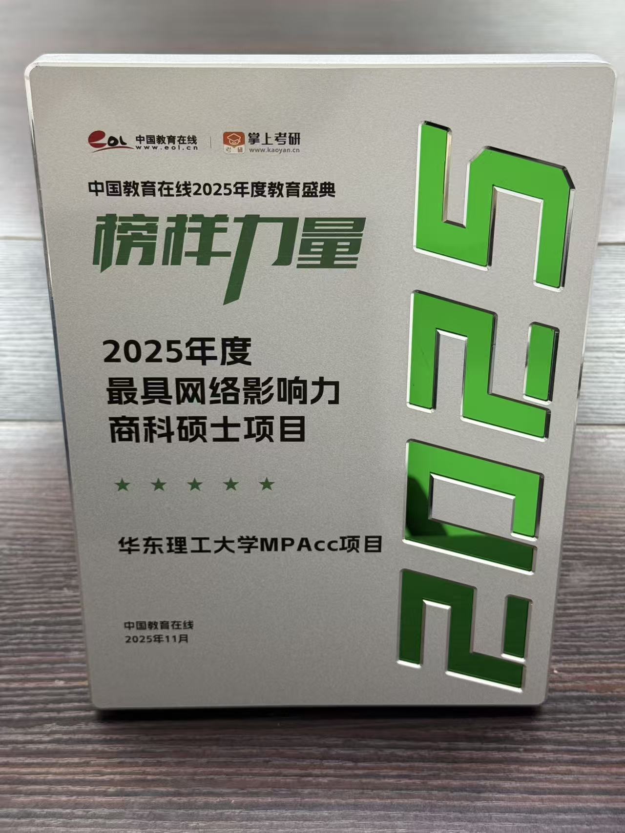 近日,中国教育在线“榜样力量·2025年度教育盛典”优秀案例名单公布。华东理工大学MPAcc项目凭借极具创新性与前瞻性的招生宣传策略,以及扎实的宣传执行实力,获评“2025年度最具网络影响力商科硕士项目”。