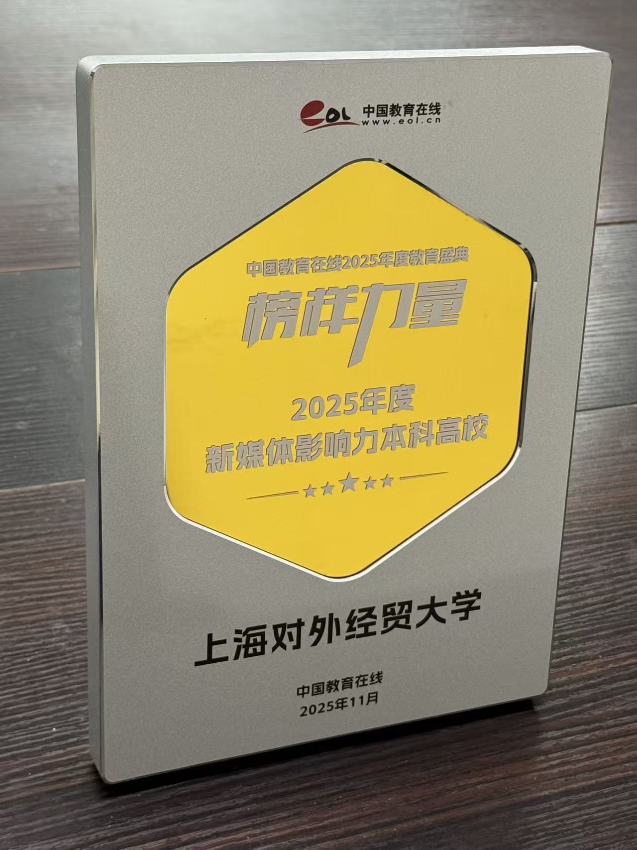 近日,中国教育在线“榜样力量·2025年度教育盛典”优秀案例名单公布。上海对外经贸大学凭借在新媒体领域的卓越成就与深远影响力,荣获“2025年度新媒体影响力本科高校”。