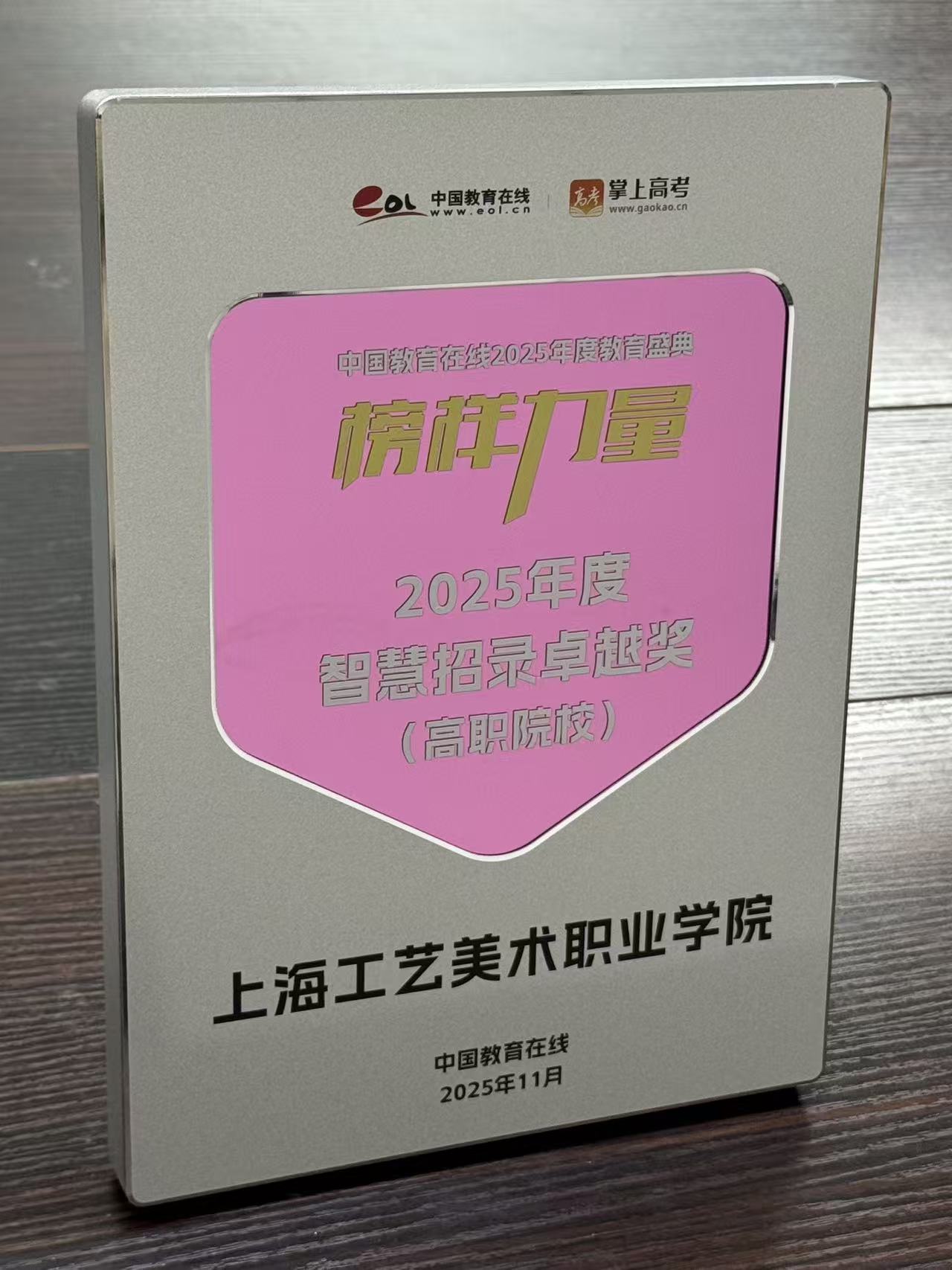 近日,中国教育在线“榜样力量·2025年度教育盛典”优秀案例名单公布。上海工艺美术职业学院凭借在招录工作中对智慧招录相关技术工具的高水平运用及卓越成果,获评“2025年度智慧招录高职卓越院校”。