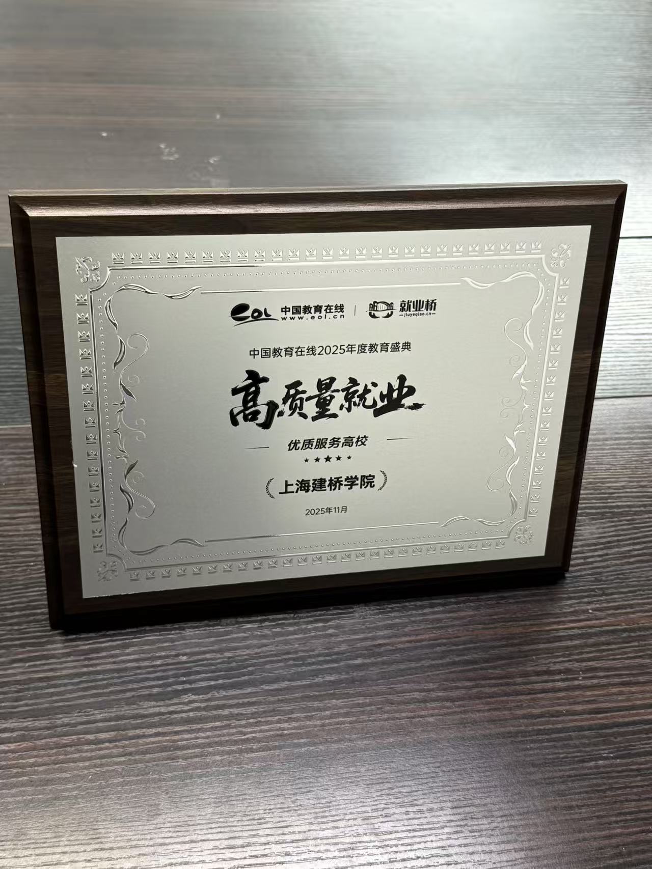 为深入贯彻党中央、国务院关于促进高校毕业生等青年就业创业的决策部署,落实《人力资源社会保障部 教育部 财政部关于做好2025年高校毕业生等青年就业工作的通知》等最新政策精神,挖掘和推广就业工作典型。中国教育在线·就业桥举办了“高质量就业”2025年度教育盛典活动,表彰高校就业工作数智化转型,创新实践的优秀案例,对推动高校就业跨越式发展,汇聚创新动力的榜样单位进行推广。上海建桥学院将以此为力量源泉,探索就业发展的创新事迹,分享就业改革的有益经验,为高校毕业生高质量就业发展提供动力引领。