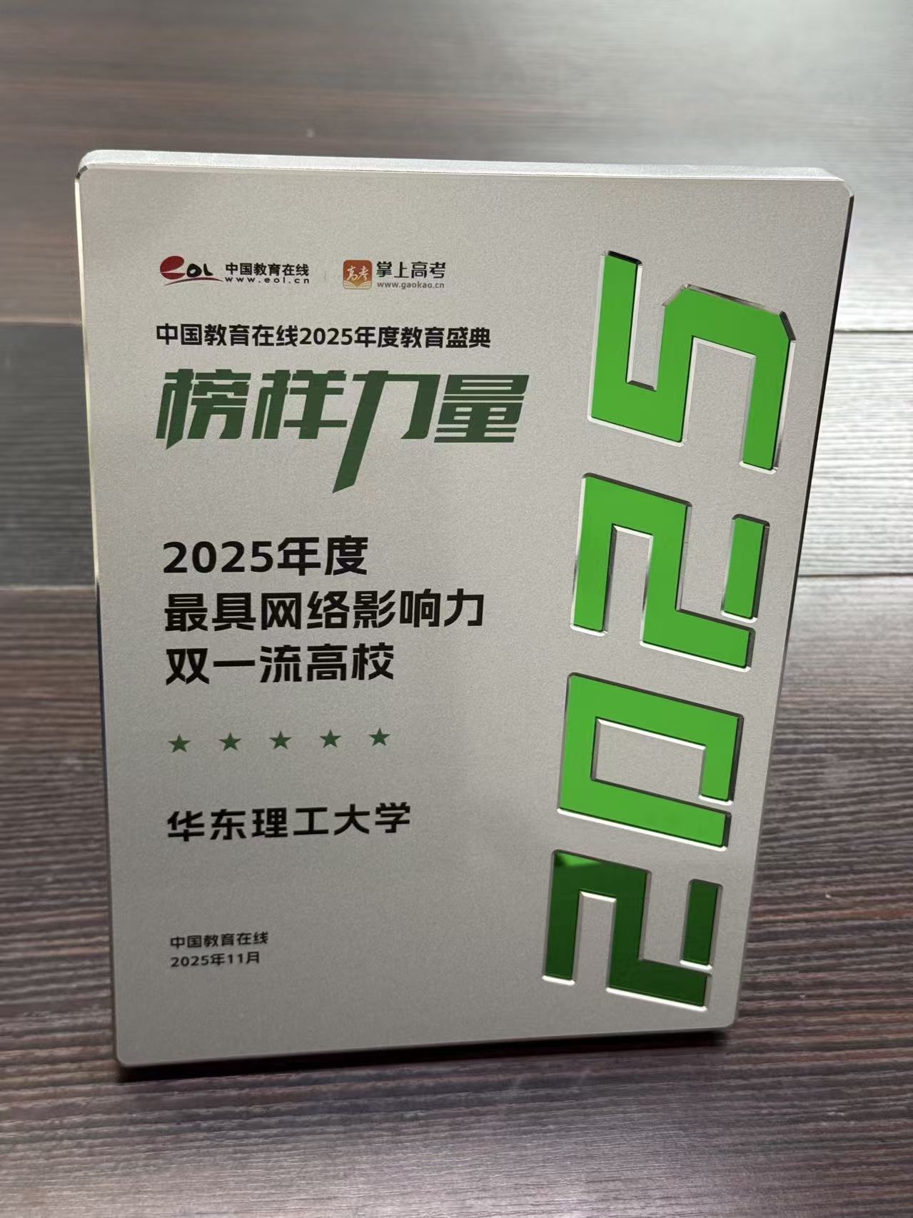 近日,中国教育在线“榜样力量·2025年度教育盛典”优秀案例名单公布。华东理工大学凭借极具创新性与前瞻性的招生宣传策略,以及扎实过硬的宣传执行实力,从众多高校中突围,获评“2025年度最具网络影响力双一流高校”。