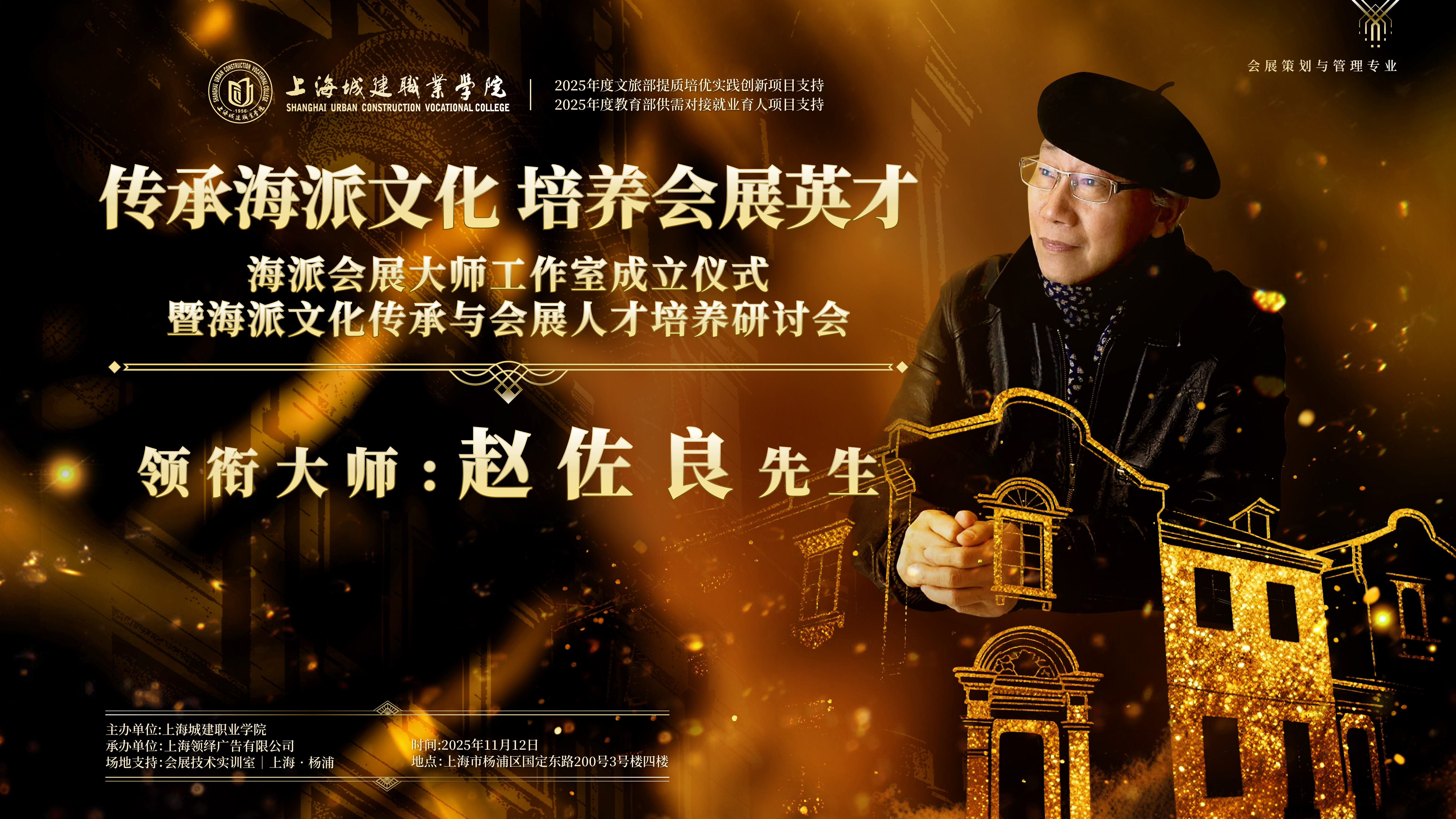 2025年11月12日,上海城建职业学院主办的“海派会展大师工作室成立揭牌仪式暨海派文化传承与人才培养研讨会”在中国(上海)创业者公共实训基地举行。本次活动以海派文化传承与会展专业人才培养为核心议题,特邀著名设计师赵佐良先生担任工作室领衔大师。