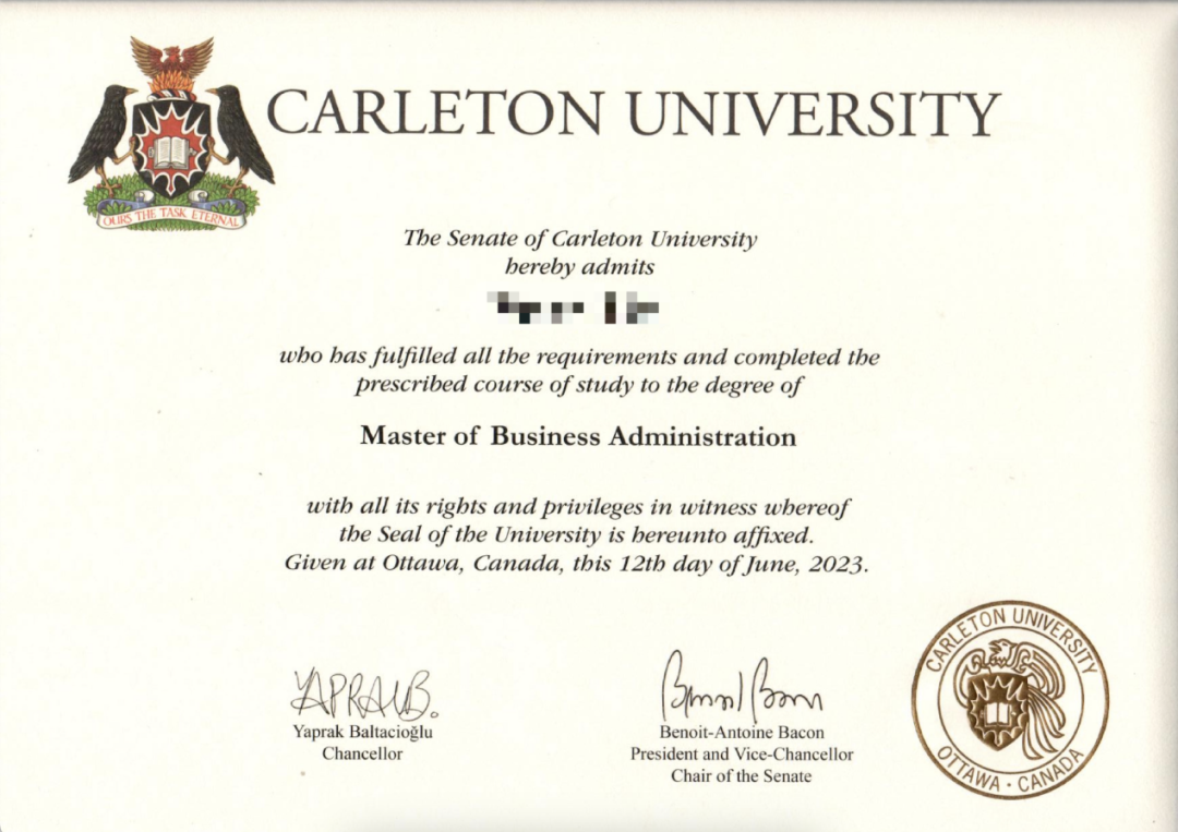 The Sprott School of Business provides a high-level, diverse MBA education and actively engages in social service. Its graduates frequently join Fortune 500 companies and Canadian government departments. Accredited by AACSB since 2013 (renewed in 2018 and 2024) and NIBS since 2009, Sprott is one of only 75 globally recognized international business schools. Since joining the UN-supported PRME initiative in 2017, the school has focused on developing future leaders who balance economic growth with sustainable development.