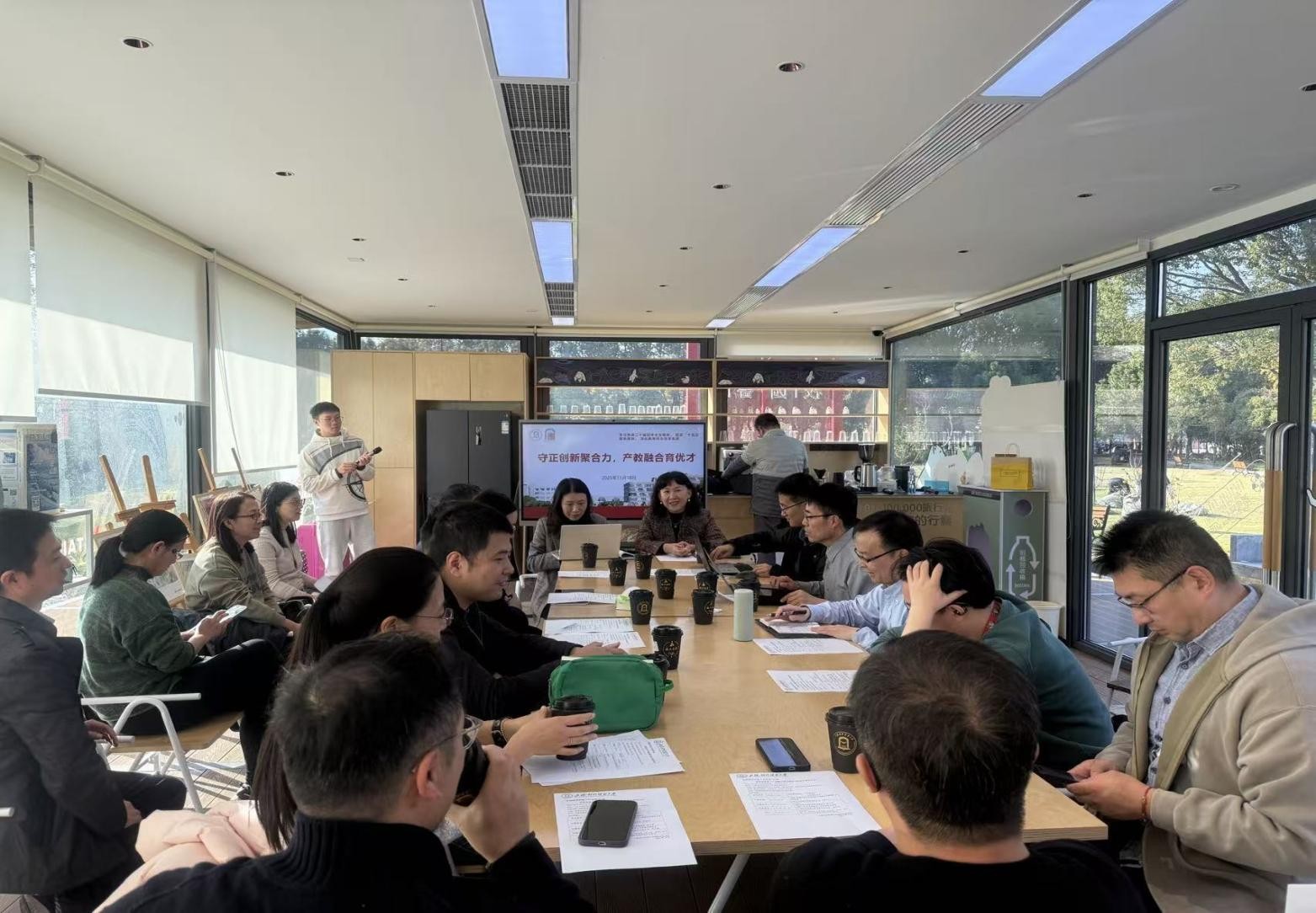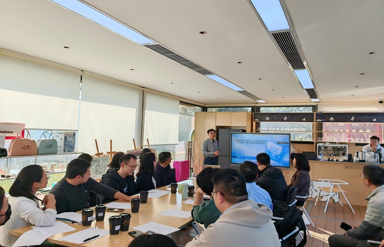 技术数智化发展深刻重塑全球贸易业态,高校人才培养迎来新挑战与新机遇。为主动对接行业变革、推动教育教学改革,近日,上海对外经贸大学在松江校区校园文旅书房成功举办“新贸易业态下产教融合模式创新与实践”专题研讨会。本次活动作为思源教学创新工作坊第32期专题活动,由国际经贸学院主办,通过“线上+线下”联动模式,汇聚上海、西藏、大连三地高校力量,共商产教融合新机制,共筑经贸人才培育新高地。