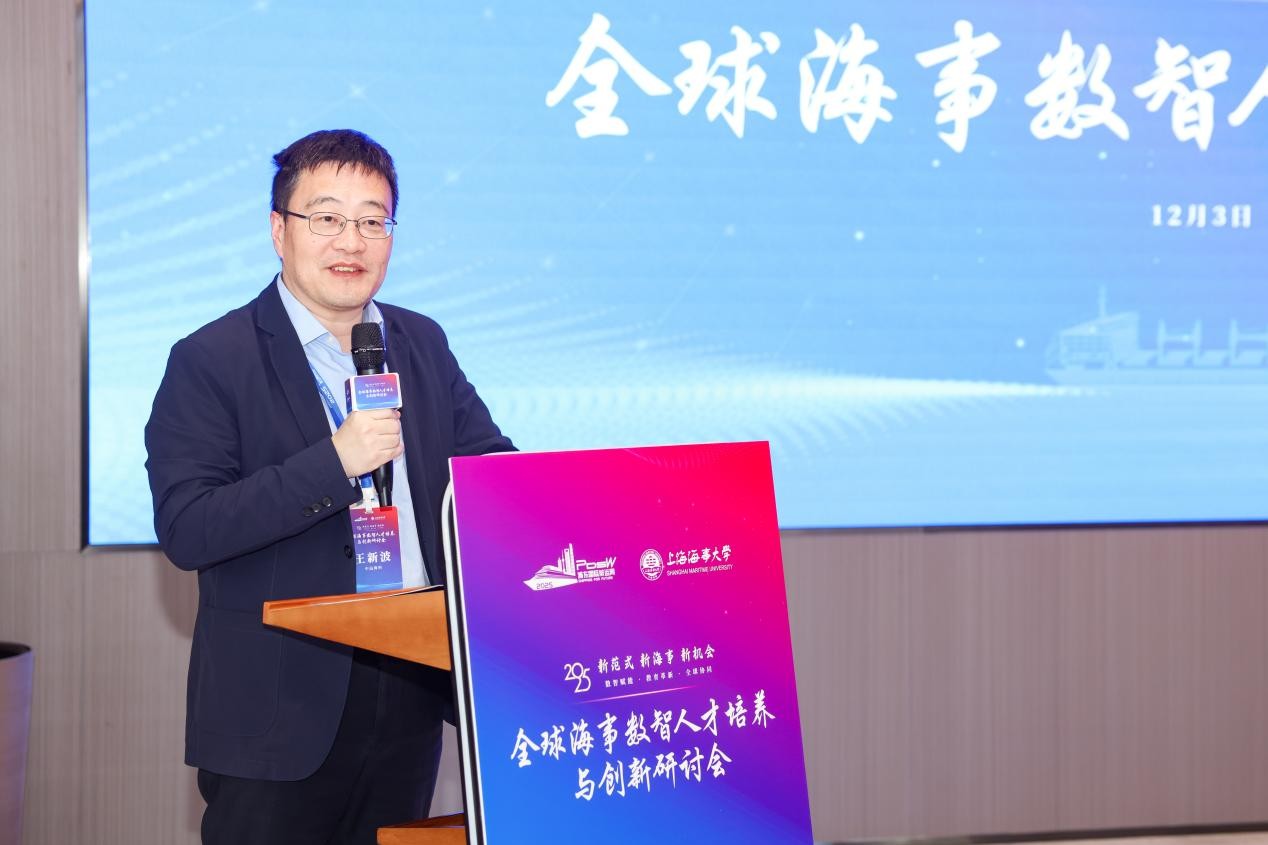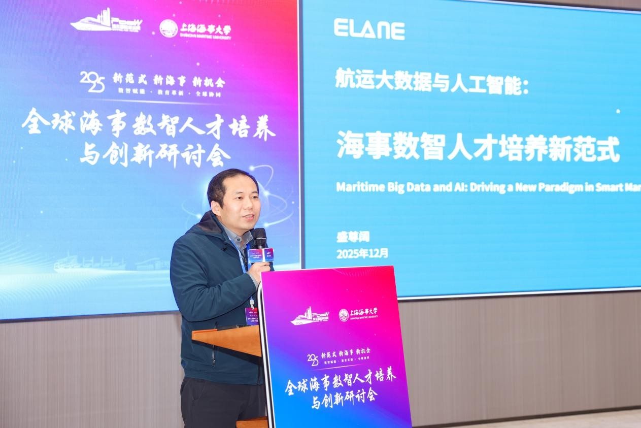 亿海蓝(北京)数据技术股份公司副总裁盛尊阔在“航运大数据与人工智能:海事人才培养新范式”报告中,从行业面临的复杂挑战切入,聚焦技术演进趋势及人才能力需求,系统阐述了复合型海事数智人才的培养方向。