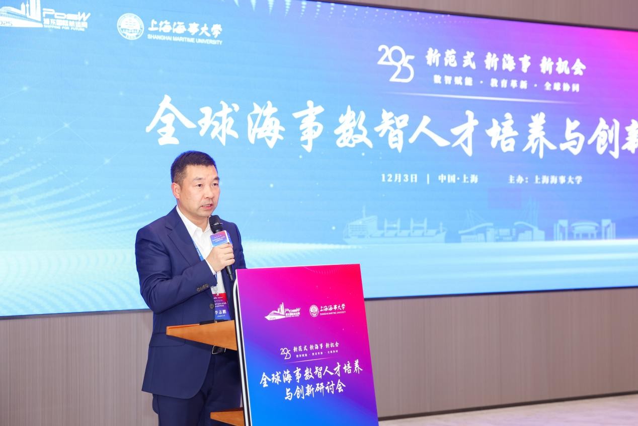 12月3日,作为浦东航运周的重要活动之一,由上海海事大学主办的首届全球海事数智人才培养与创新研讨会在上海SK大厦举行。会议以“新范式 新海事 新机会”为主题,聚焦“数智赋能·教育革新·全球协同”,旨在打造面向全球的高水平交流与合作平台。来自上海市教委、上海海事局等政府部门代表,新加坡国立大学、中远海运科技、华为、腾讯云、科大讯飞、蚂蚁密算、库帕思、亿海蓝、飞骆、集行通、壹沓科技、龙船科技、和鲸科技、美华系统、hiFleet等国内外高校与港航科技企业的专家学者齐聚一堂。会议由上海海事大学党委副书记、副校长李志鹏主持。