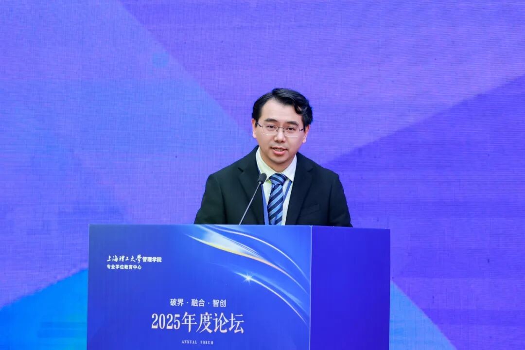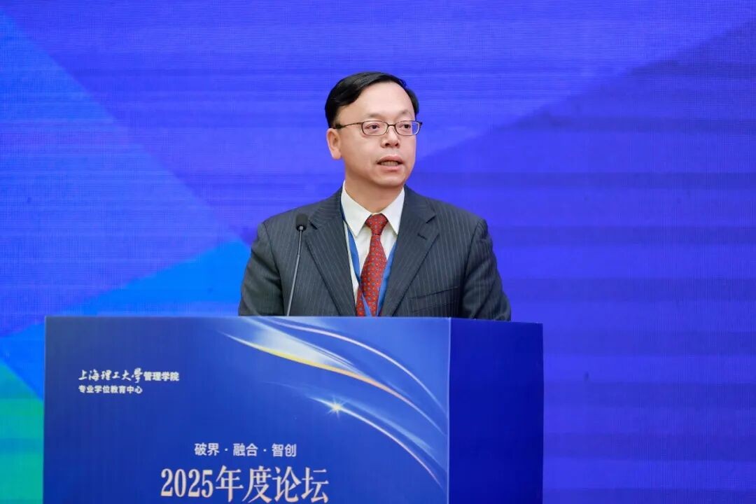 2月12日下午,上海理工大学管理学院在军工路校区举办“破界·融合·智创 共筑产教融合新生态”2025年度论坛。校党委书记王凌宇,规划发展处处长宇振盛,校友工作联络处处长曲德强,研究生院副院长郑继红,霍尼韦尔(中国)总裁余锋校友,经纬创投合伙人、黄浦区政协委员唐磊校友,上海联创投资管理合伙人朱一凡,上海国创投资有限公司董事长、上海蓝丝带公益基金会理事长白俊平校友,管理学院党政领导等出席活动。论坛吸引近200名师生与校友代表现场参会,另有两万余人次线上同步观看直播。开幕式由管理学院党委书记马静波主持。