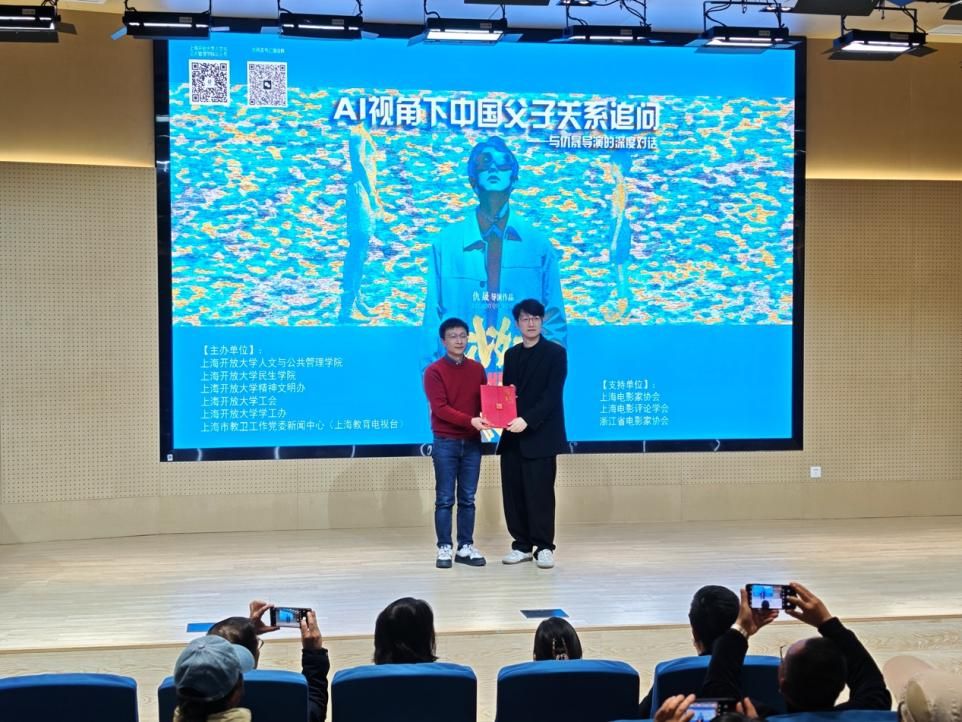 《比如父子》是仇晟导演历时七年创作、为纪念双亲创作的散文诗式电影。上海开放大学人文与公共管理学院党总支书记林晓英在作影片导赏时表示,这部作品将AI科技与人文精神融合,既引发观众对传统亲情内涵的审视、对现代科技变革的思考,更传递出释怀过往、珍惜当下、展望未来的情感共鸣。支持这样兼具艺术探索价值与人文关怀温度的电影,也是本次活动的一项初衷。