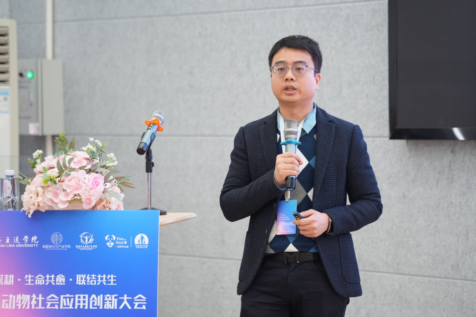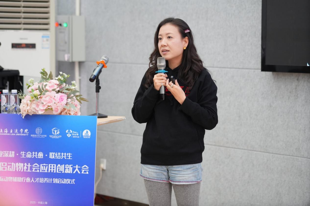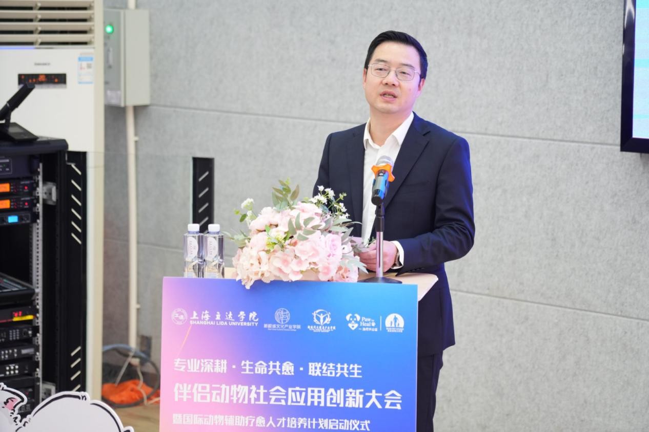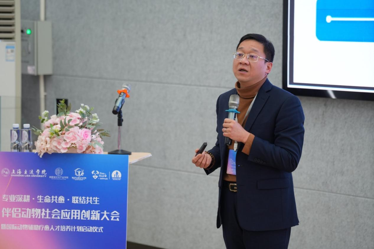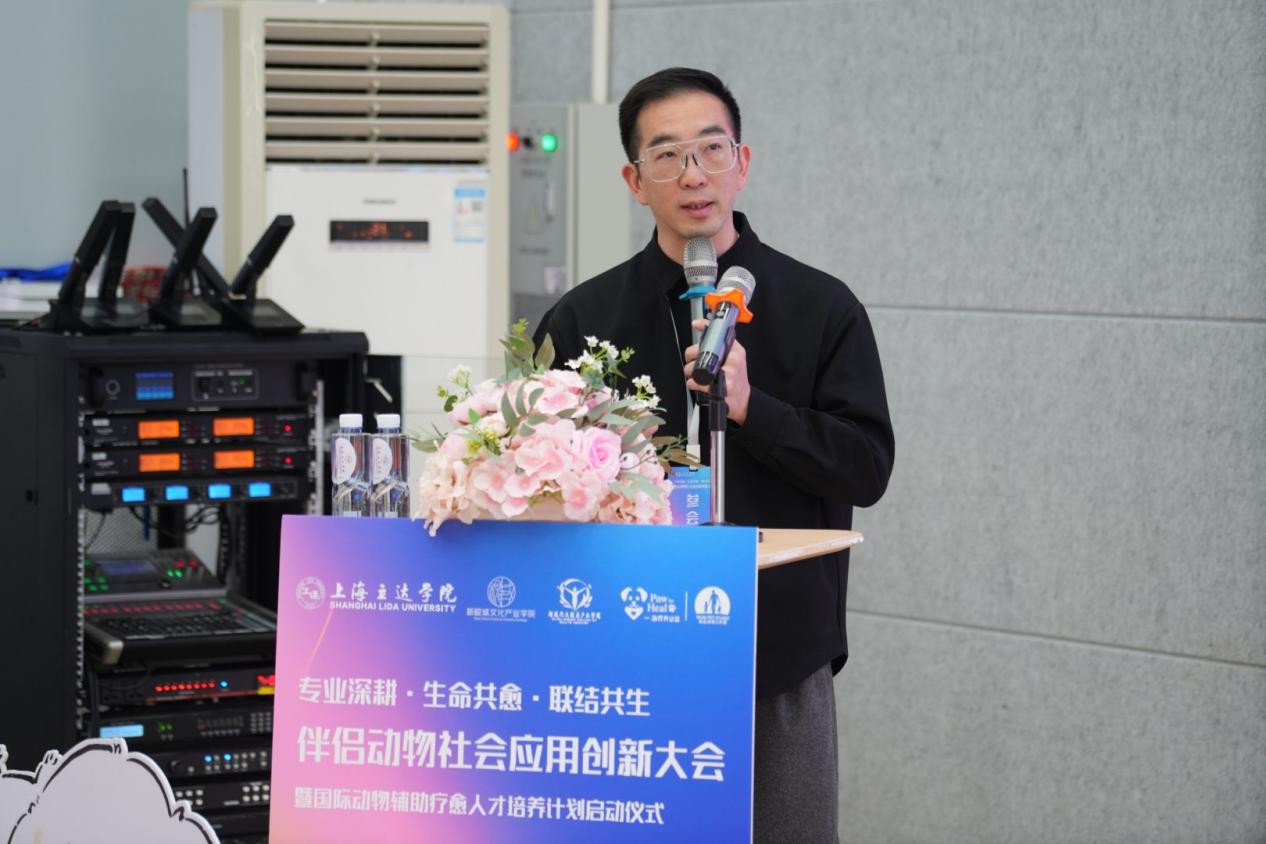 上海立达学院副校长祁焱华代表主办方致辞,他强调本次大会的核心要义在于深挖伴侣动物的社会应用创新价值,既涵盖动物经济市场的发展潜力,也聚焦其在情感连接与心灵疗愈中的独特潜能。他指出,动物辅助疗愈的发展需牢牢立足学科融合与人才培养两大关键,打破传统单一视角的局限,着力培育兼具动物行为学、心理学、医学、教育学等多领域知识的复合型专业人才。同时,要以开放姿态打破行业与学科边界,促进多元智慧碰撞交融,推动理论研究与实践应用深度结合,最终构建起完善的动物友好型社会支持网络,助力相关产业高质量发展。