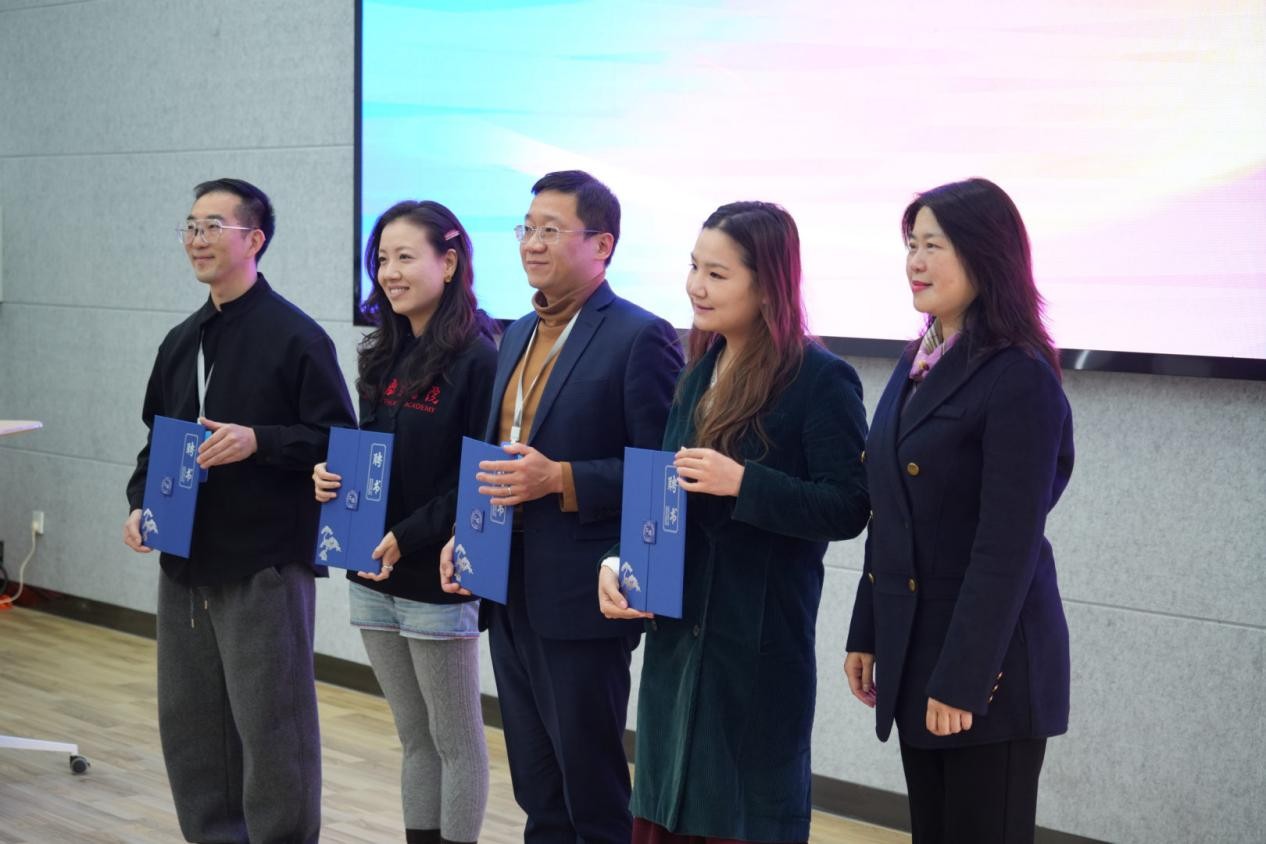 企业导师聘任仪式同步举行,上海立达学院副校长郭霖为上海长宁虹桥街众妙公益文化发展中心理事长邬稚晖、上海嘉会国际医院社会工作办公室负责人狄馨雨、上海市金茂律师事务所合伙人金文玮、中国PFH动物辅助干预项目创始人吴起颁发聘任证书。