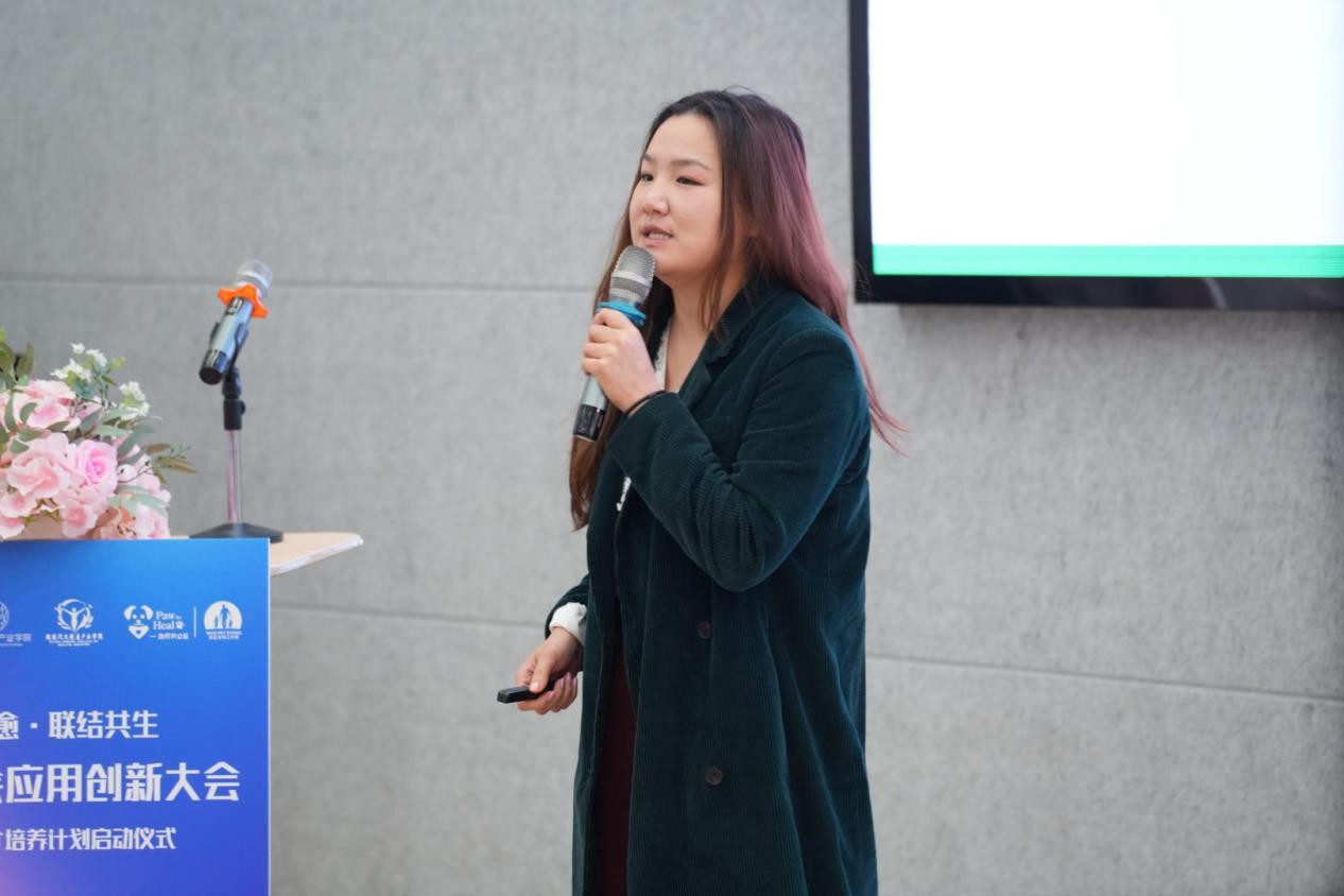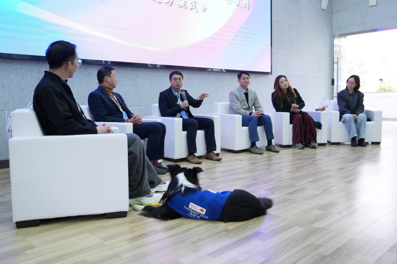 吴起结合个人成长中与宠物狗的互动经历,生动分享了动物辅助干预项目的发展历程与社会价值。他介绍,经专业训练的治疗犬已在自闭症儿童帮扶、青少年教育引导、企业员工减压等多个场景发挥重要作用,项目不仅获得协和医院等权威医疗机构认可,还成功拓展至校园、检察院等多元领域。同时,他强调,行业发展需建立完善的专业标准,以此保障动物福利与干预服务质量,推动领域规范化发展。