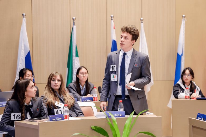 “国际合作”成为贯穿全场的共识。意大利、俄罗斯、哈萨克斯坦等“代表”强调技术共享与跨国协作是应对挑战的关键。美国、德国、泰国等代表,也从现实角度探讨了方案落地时可能面临的具体障碍。上半场如同一段深刻的认知旅程,让各国学生们切实领略到全球治理的复杂性、利益的多元性与共识的珍贵。