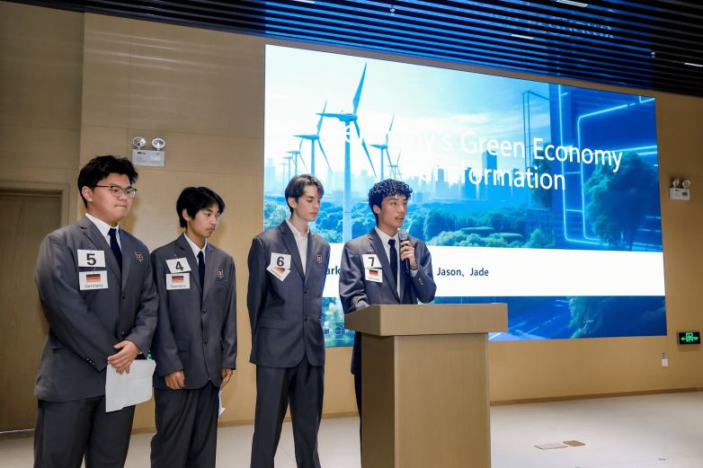 论坛上半场,多所学校学生分别组成了13国代表团,以“国家代表”身份进行立场陈述,从可持续农业、循环经济到环境数据分析,多角度阐述各国绿色转型路径。他们清晰地看到:绿色经济转型不仅能改善环境,更是重塑经济、创造未来就业的强大引擎。