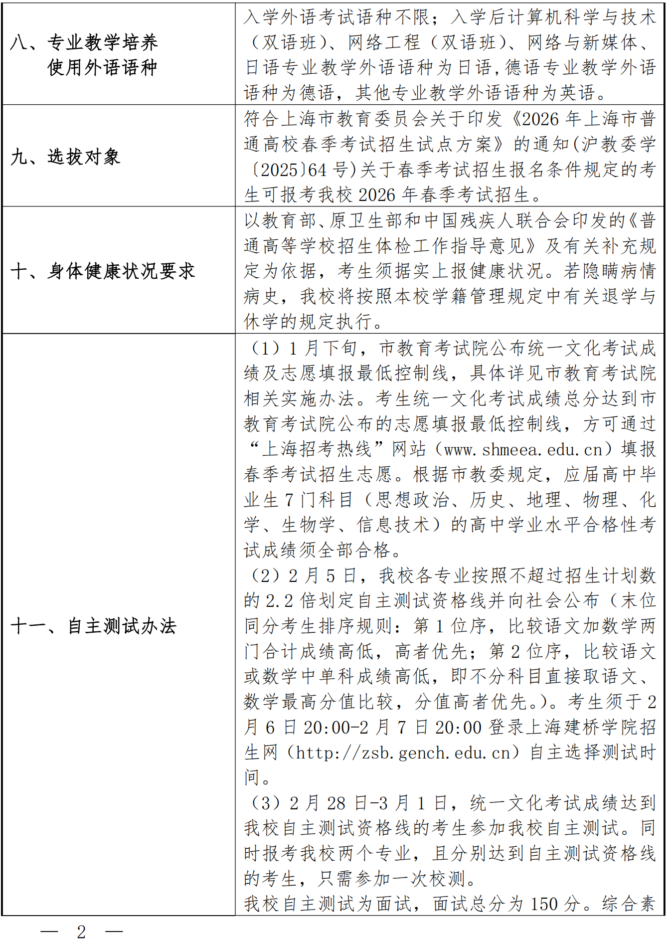 2026年上海建桥学院春季考试招生章程