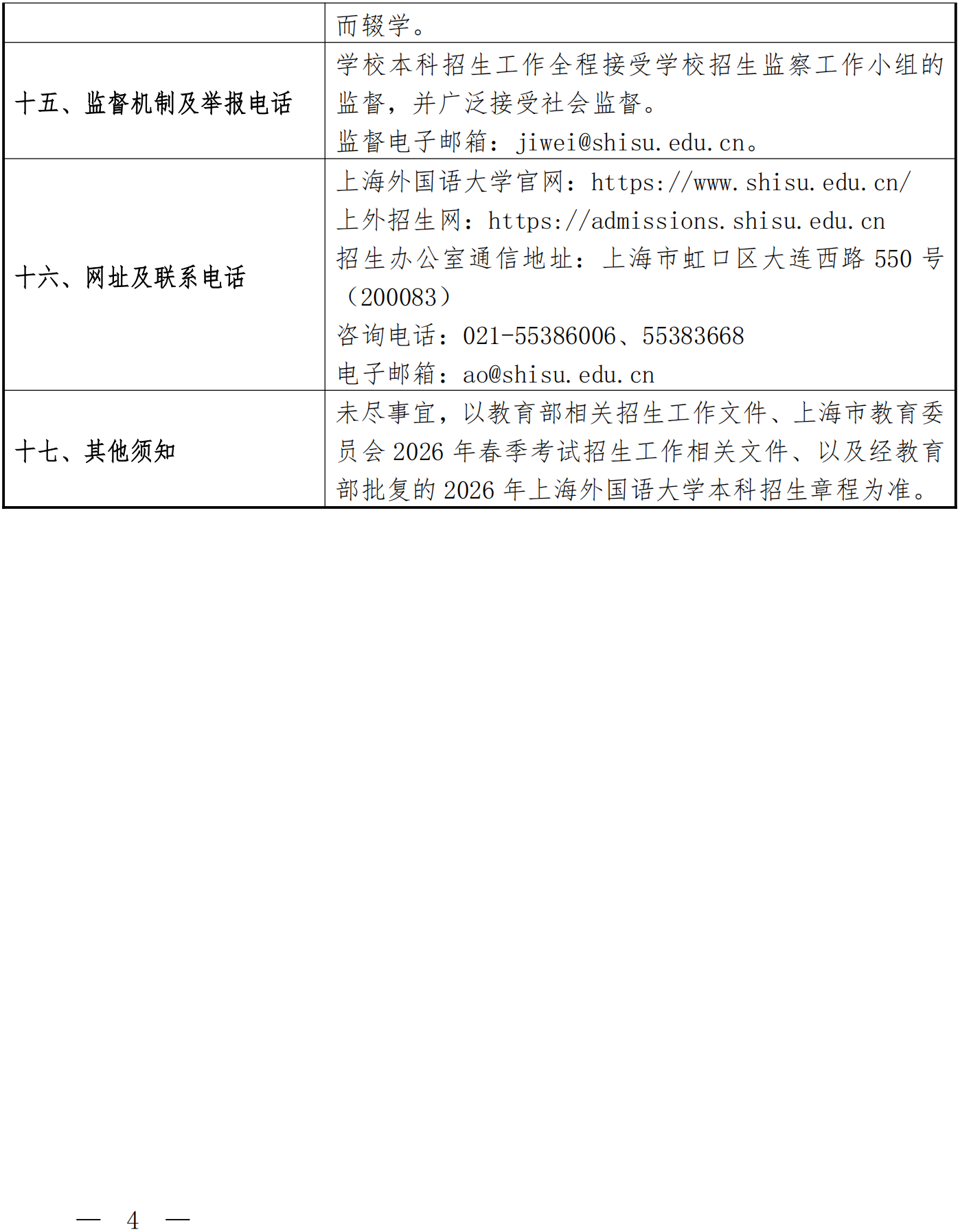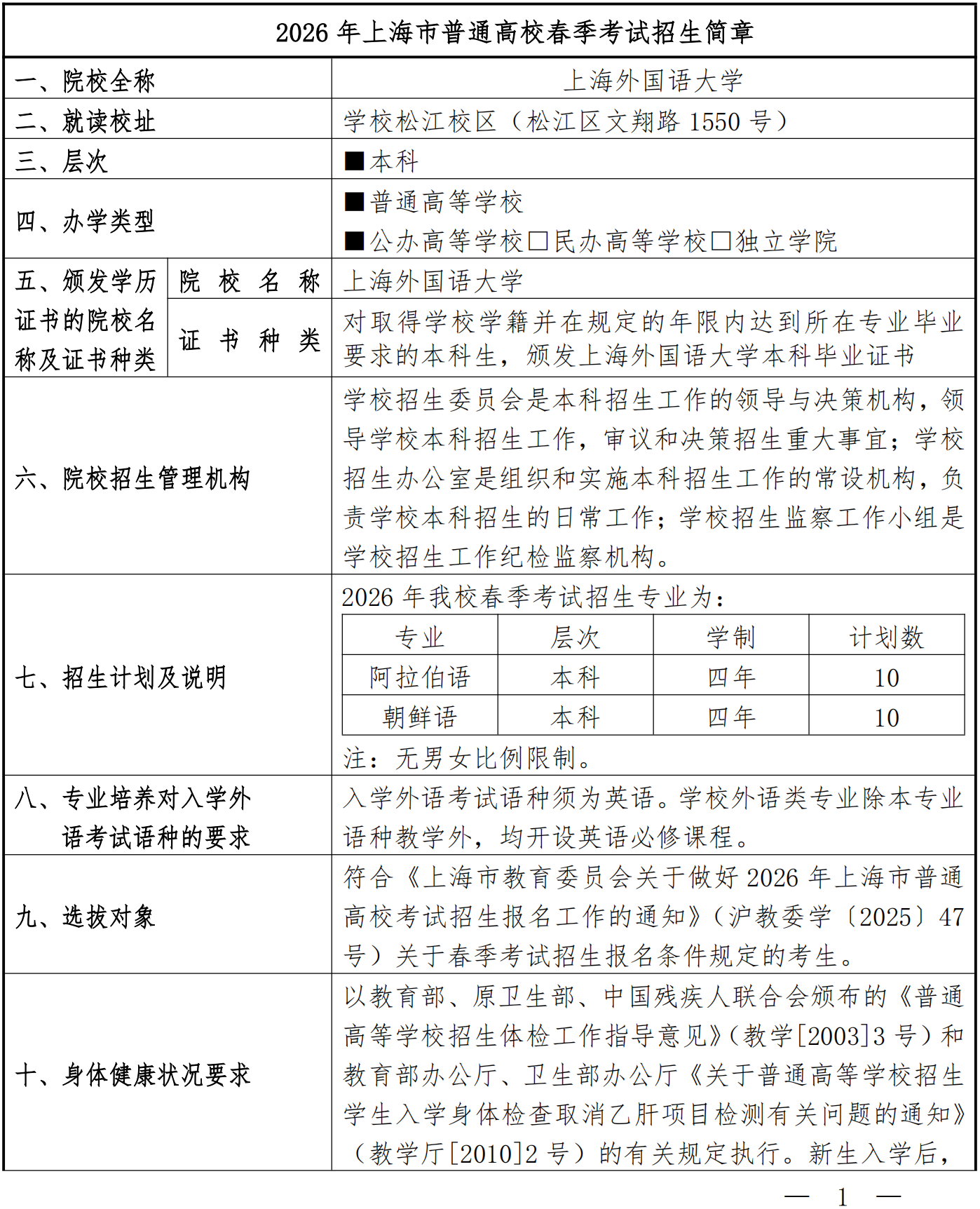 上海外国语大学2026年春季考试招生章程