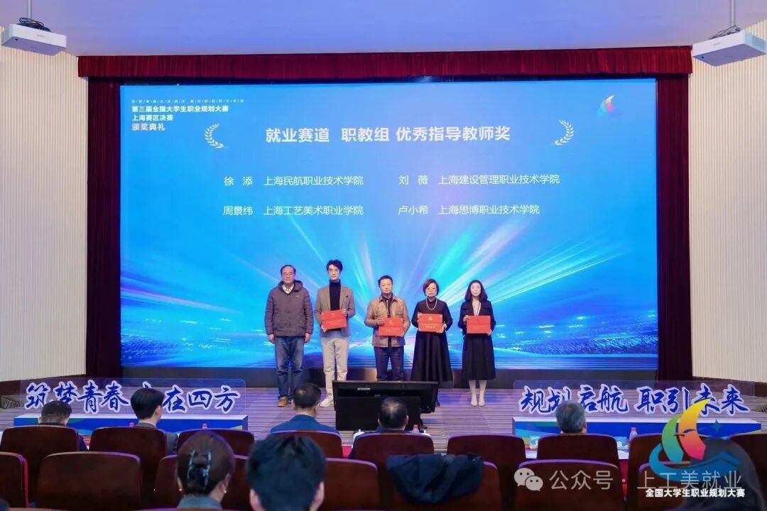 历经两周的激烈角逐,第三届全国大学生职业规划大赛上海市赛于2025年12月28日正式落下帷幕。在这场汇聚上海各高校优秀学子的职业规划比拼中,上海工艺美术职业学院表现亮眼,获得市赛决赛一金一银一铜,优秀指导教师奖,学校获优秀组织奖,充分展现了上海工艺美术职业学院在大学生职业规划教育与就业指导工作中的扎实成果。