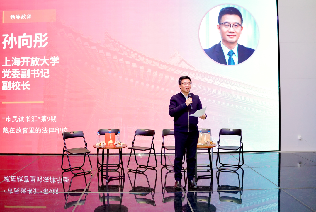 12月28日,由上海开放大学联合上海书城共同主办的第九期上海“市民读书汇”精彩举行。本次活动特邀故宫博物院研究馆员张剑虹携专著《藏在故宫里的法律印迹》,与上海开放大学多位法律学者联袂梳理从传统法律文明到当代宪法精神的内在脉络,带领市民在故宫文物与法律典籍的交织中,开启一场跨越古今的法治文明对话。上海开放大学党委副书记、副校长孙向彤出席并致辞。