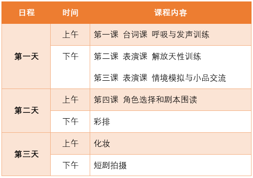 (注:每课时90分钟;短剧中角色根据学员学习水平、角色匹配度等由剧组统一安排)