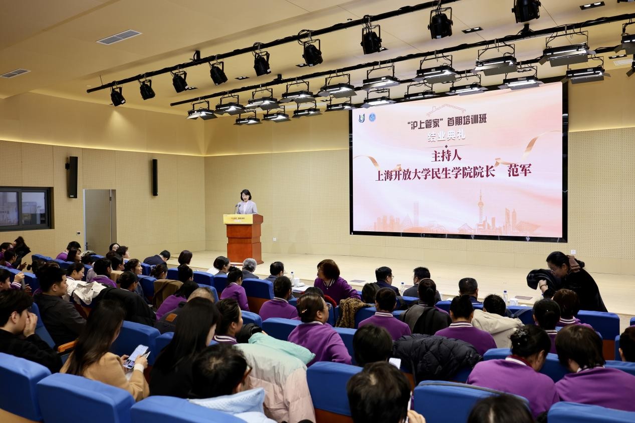 上海开放大学党委副书记、校长贾炜表示,希望学员们持续精进,用专业服务温暖家庭、贡献城市,并表示学校将继续发挥开放教育优势,深耕民生紧缺领域人才培养,为提升上海城市生活品质贡献力量。