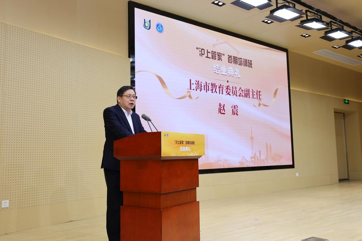 56%的家政学员实现明显职业成长或技能提升,85%的家政学员因服务品质显著提升而获得客户的薪资提涨或表扬┈┈这是从1月17日下午在上海开放大学举行的上海首届家政服务高技能人才专项培训项目——“沪上管家”首期培训班结业典礼上传来的喜讯。60余名来自行业一线的家政学员通过432学时的系统培训后顺利结业,将为市民提供更优质的家政服务。这不仅是一次学业的圆满收官,更是上海家政服务业向“高素质、专业化、品牌化”迈进的一次生动展示。上海市教委、上海市商务委、上海开放大学等相关领导,以及行业专家、企业代表及全体学员140余人齐聚一堂,共同见证首批“沪上管家”的诞生。上海市教委副主任赵震,上海开放大学党委副书记、校长贾炜,上海市教委职业教育处处长马建超,上海市商务委服务业处一级调研员倪华,上海市家庭服务业行业协会会长于海群等出席活动。