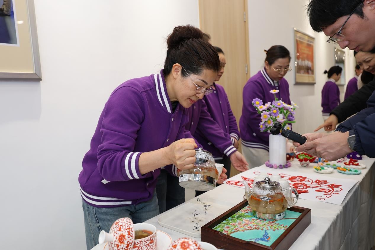 结业典礼开始前,成果展示区已化身为沉浸式“生活美学体验场”,一场属于家政服务者的“专业秀”在这里温暖上演。身着统一“沪上管家”班服的学员们笑容洋溢,从容展示所学:为长者设计的养生茶饮温热润心,为孩子制作的动物造型点心充满童趣又富有营养;一幅幅专为客厅、餐厅、玄关等不同场景设计的插花作品诠释着居家雅趣,针对商务出行需求的行李箱“魔术收纳”则展现了效率与美观的平衡。长廊两侧的图文展板,忠实记录着七个月来的学习足迹——从课堂上的认真听讲、实训中的反复操练,到课程体系的系统学习、笔记里积累的实用知识……这些真实的记录,展现了学员们在专业技能和综合素养方面的扎实成长。