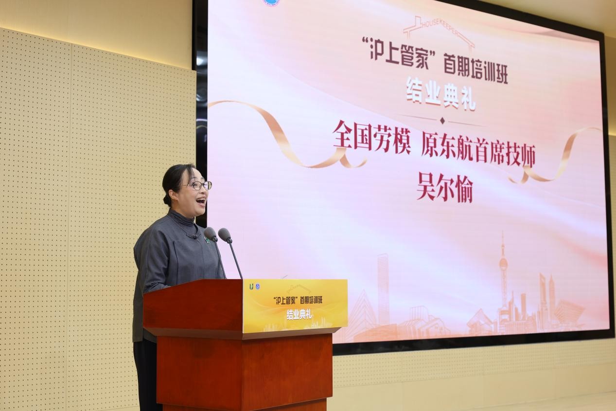 “沪上管家”首期培训班教师代表,全国劳模、原东航首席技师吴尔愉发言