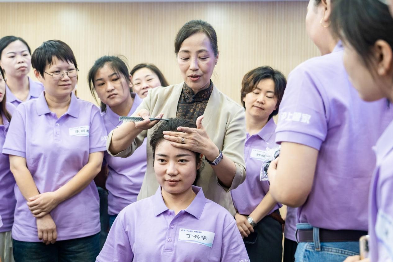 培训采用由高校学者、行业专家、企业导师及劳模典范共同构成的“四维导师库”。全国劳模、原知名航空乘务员吴尔愉作为礼仪课教师,为学员们上了生动的第一课。她在结业仪式上动情地说:“服务的本质是相通的,核心是‘眼里有活,心里有人’。如今,我看到你们从老人迟缓的动作、孩子的表情中学会体察需求,这就是最珍贵的进步。”她感慨地说:“你们用行动证明,家政服务是充满专业与温情的暖心事业。”
