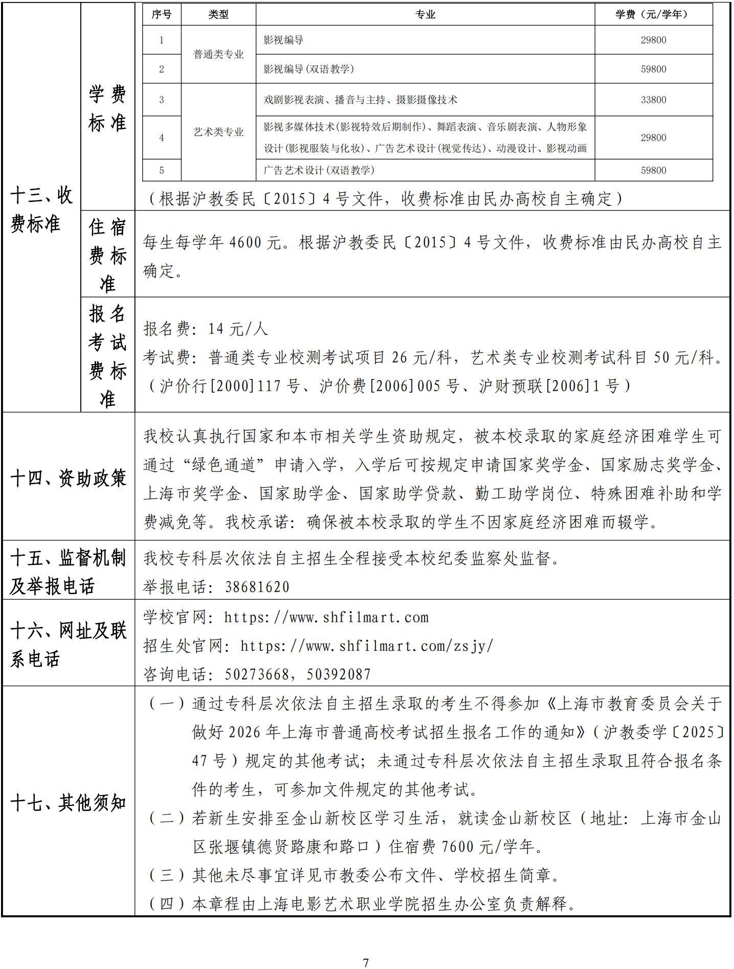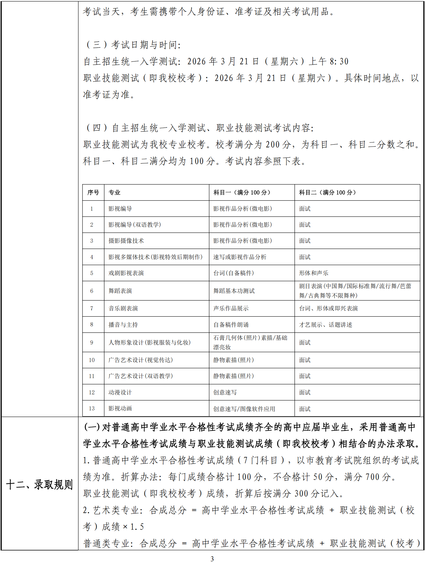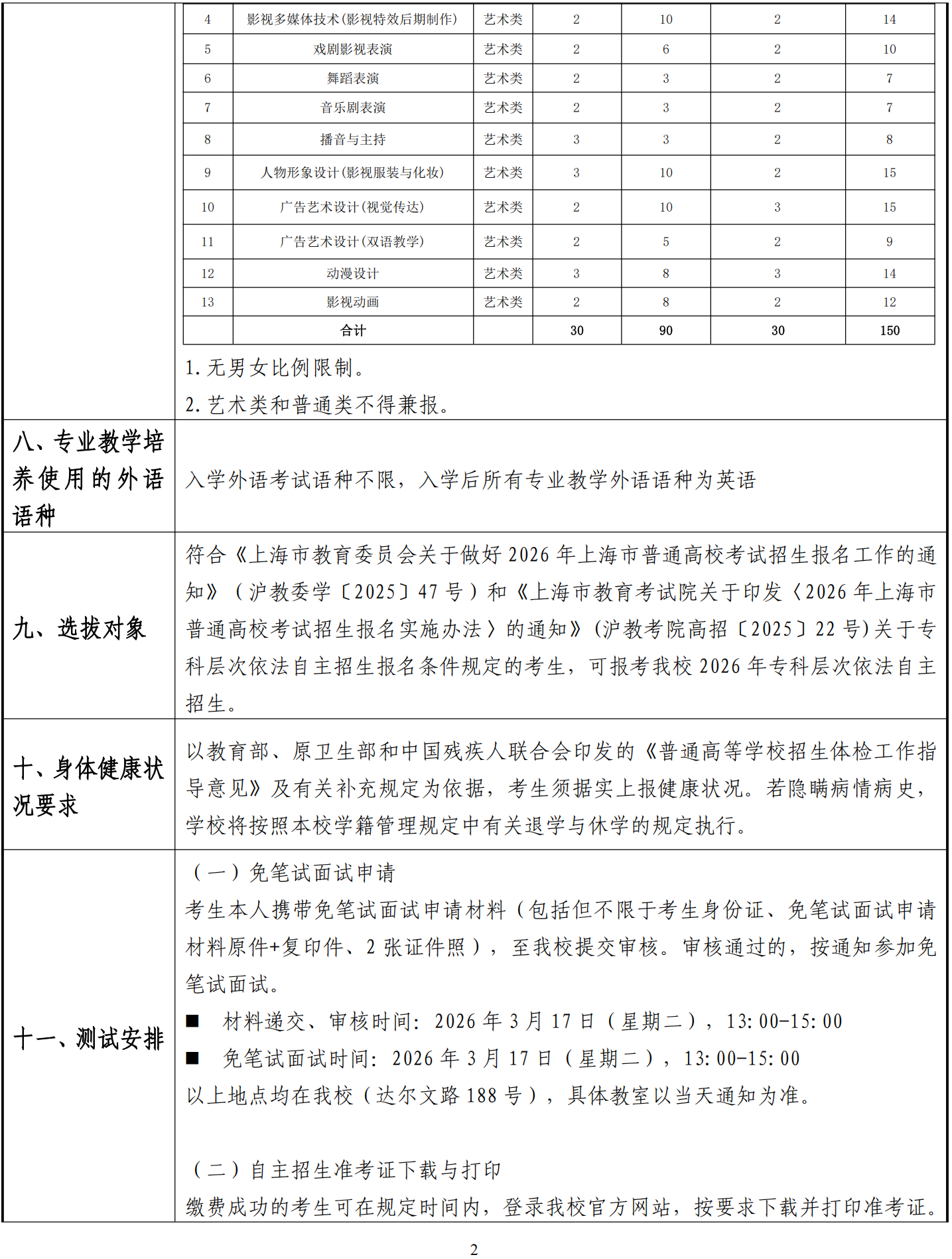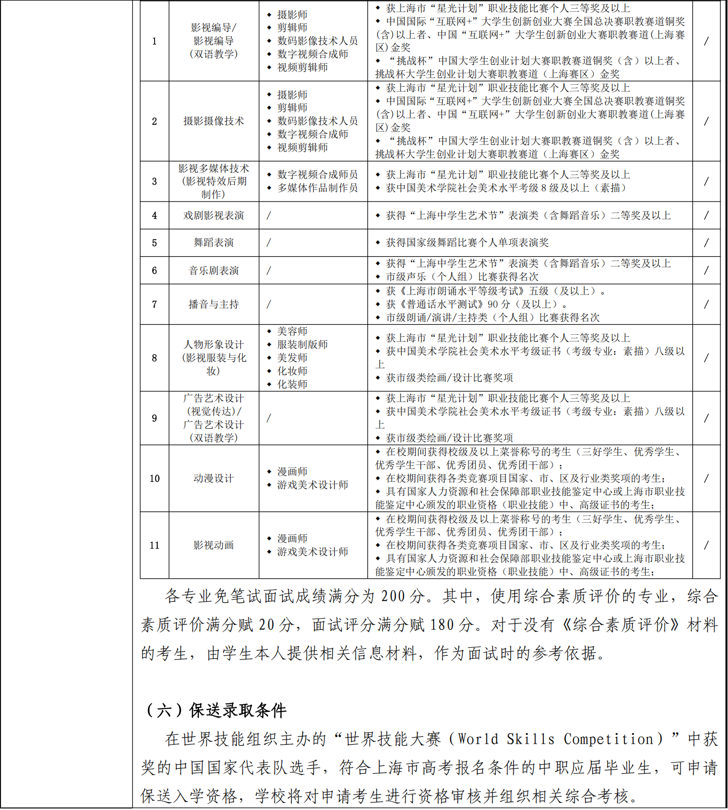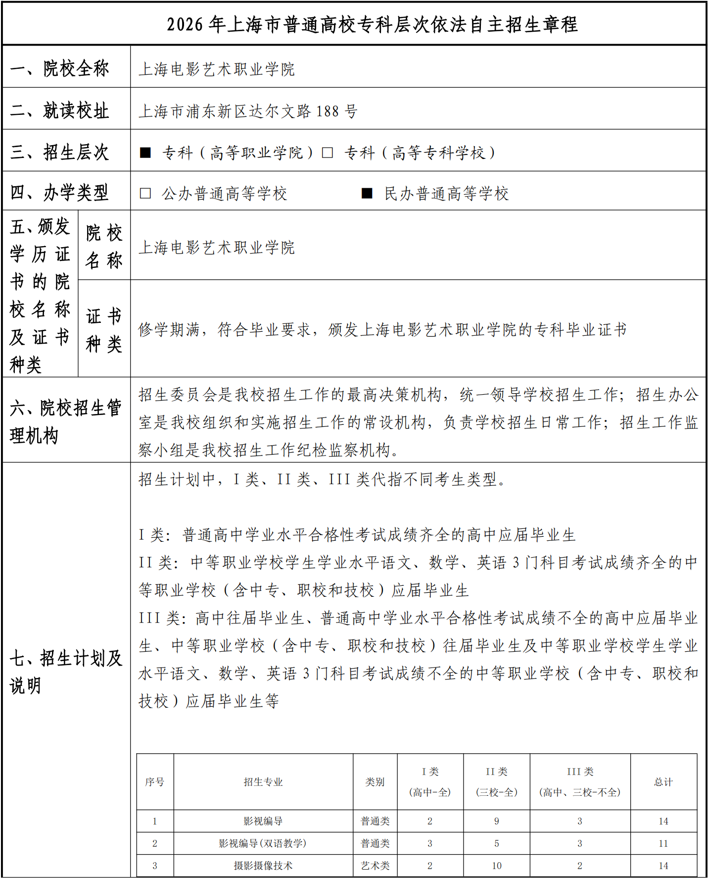 上海电影艺术职业学院2026年专科层次依法自主招生章程