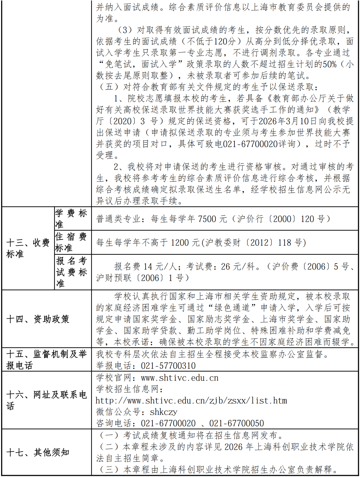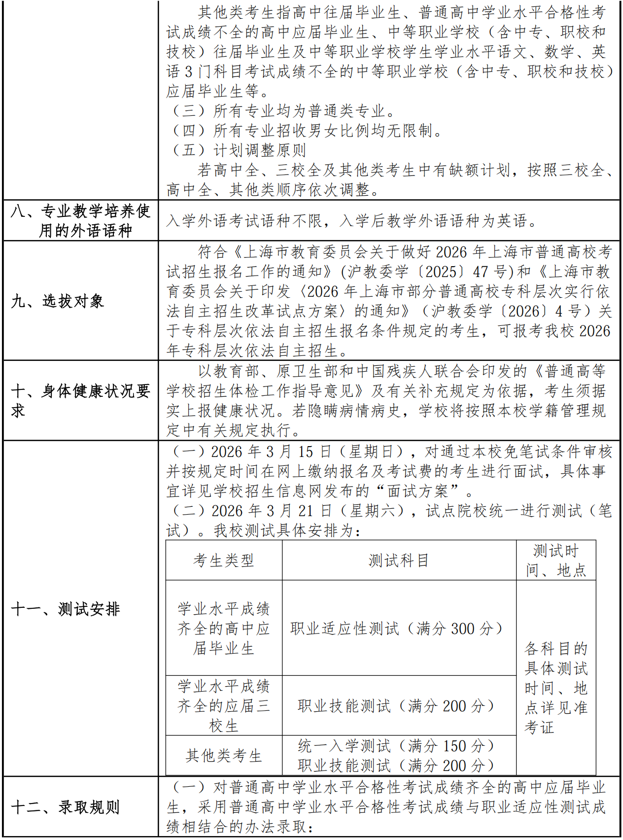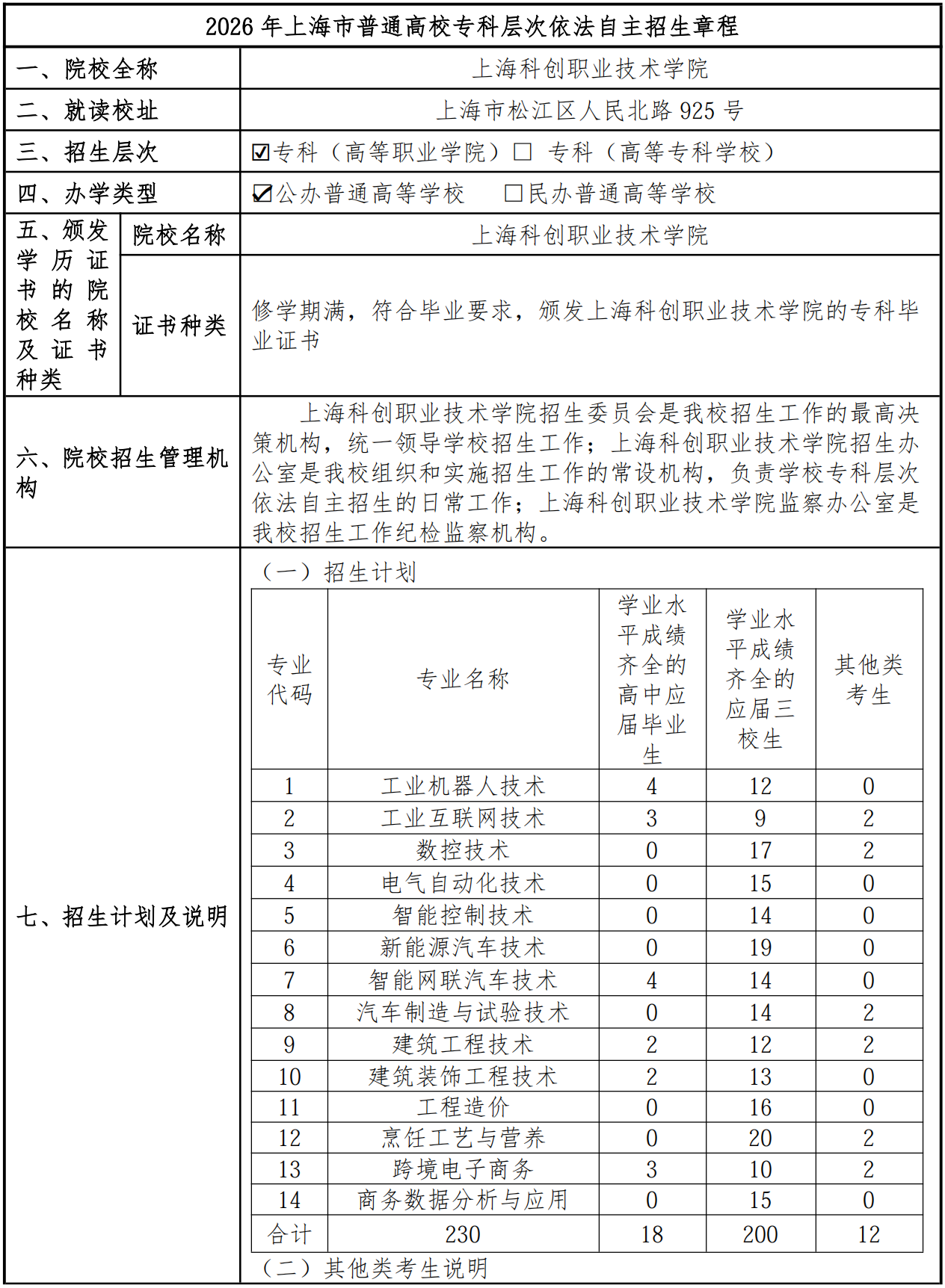 上海科创职业技术学院2026年专科层次依法自主招生章程