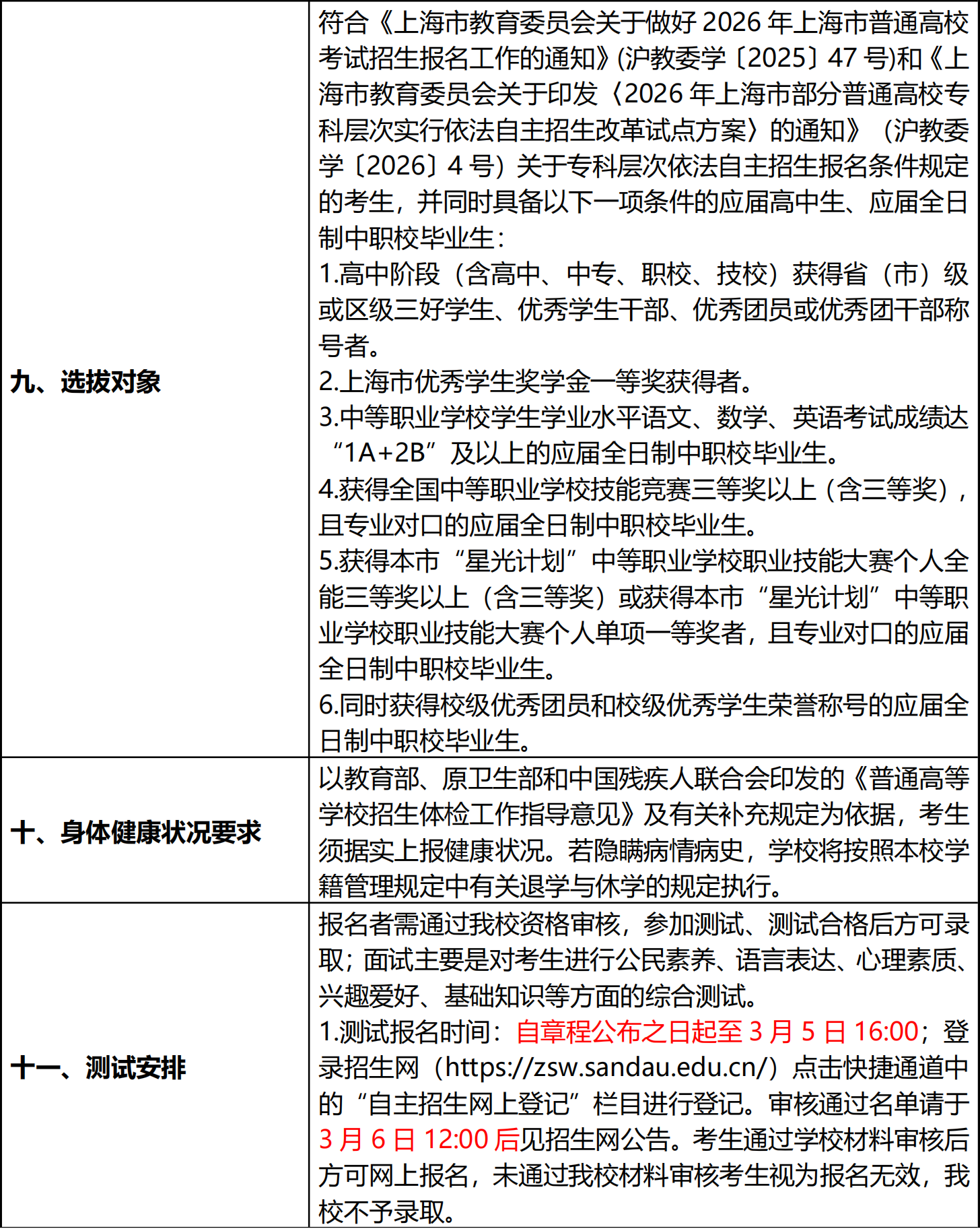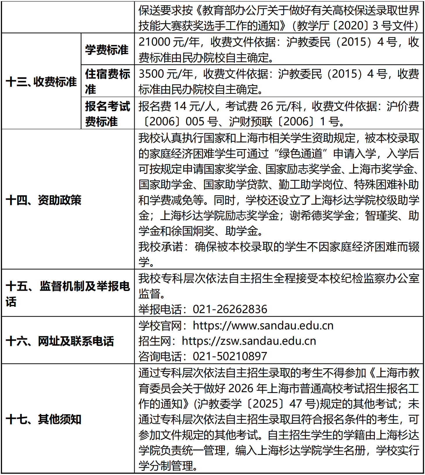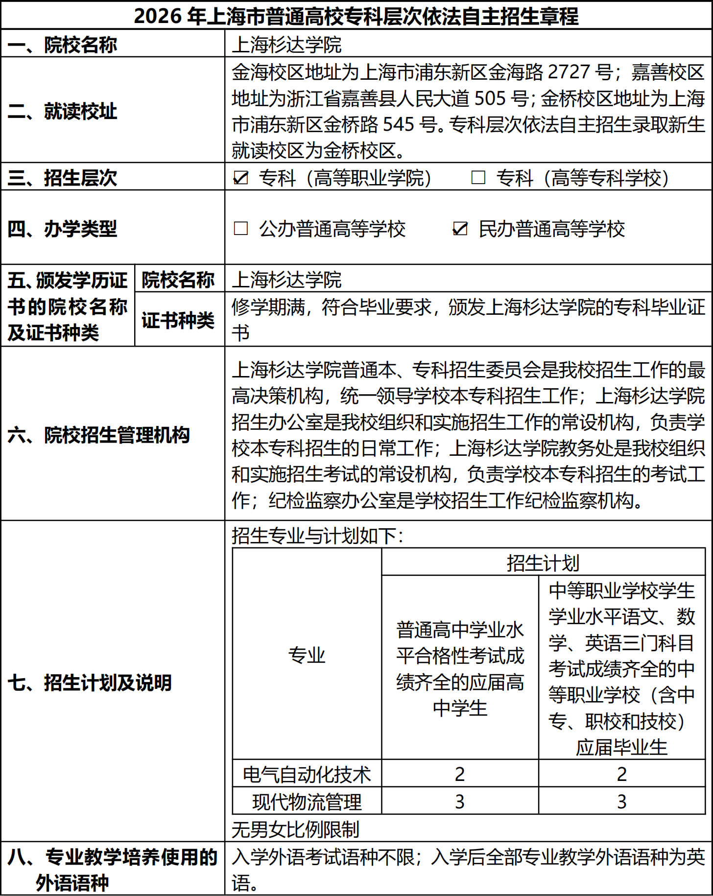 上海杉达学院2026年专科层次依法自主招生章程