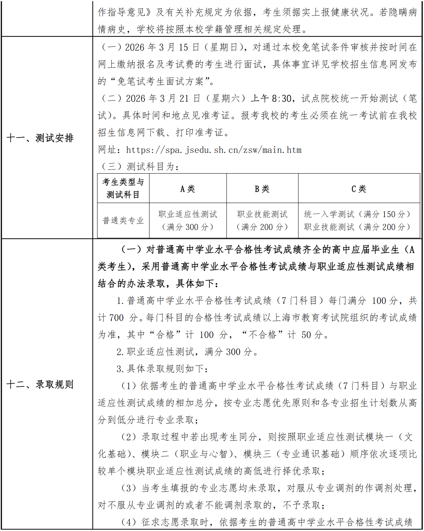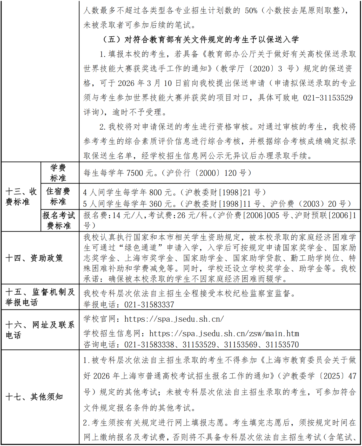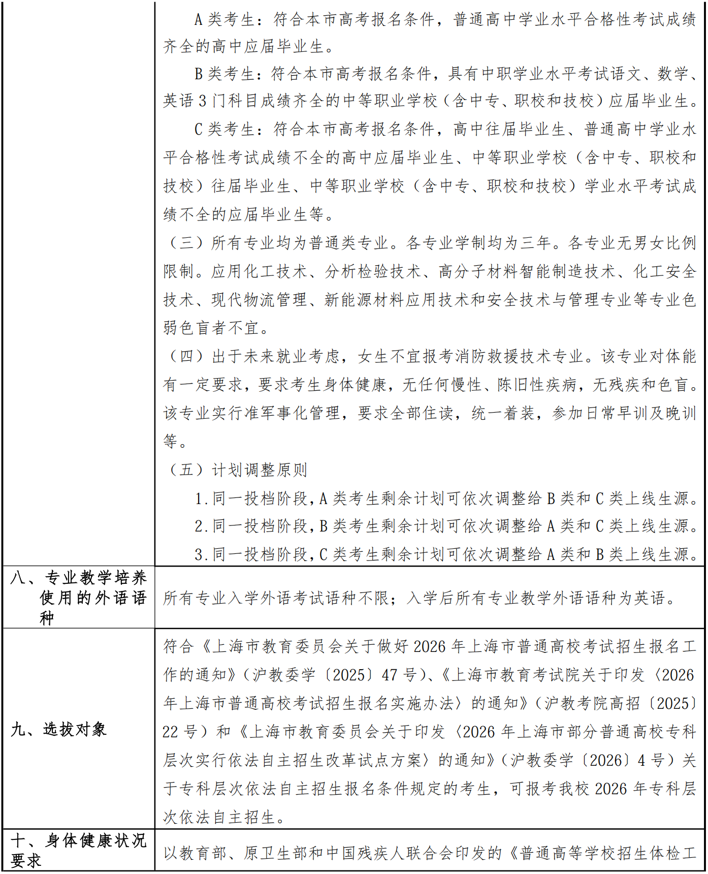 上海现代化工职业学院2026年专科层次依法自主招生章程