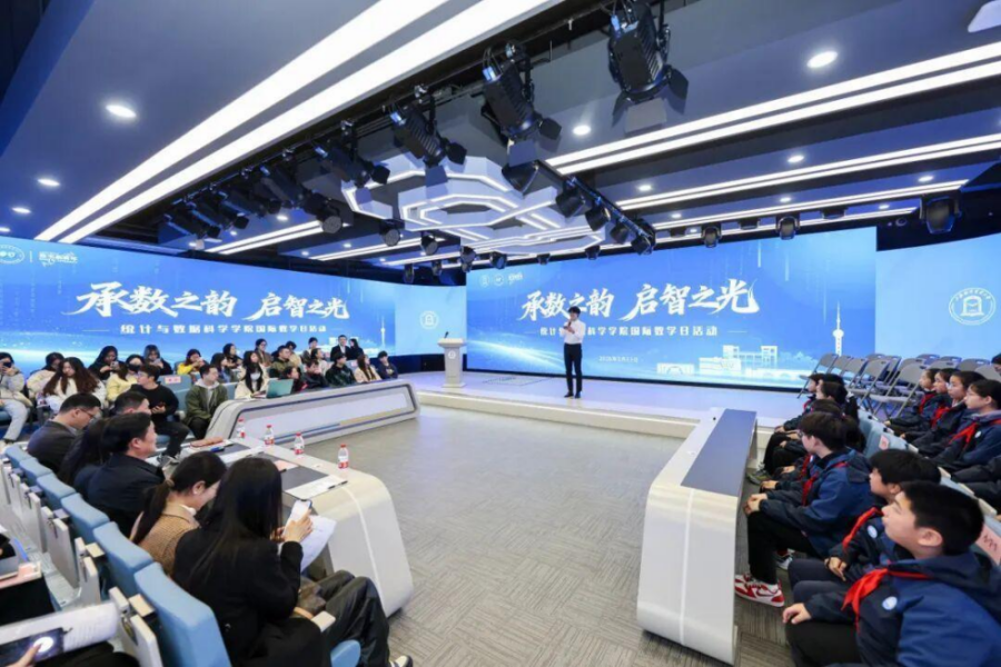 在春意盎然的三月,一场跨越大中小学的“数学π对”温情启幕。3月13日,以“承数之韵,启智之光”为主题,上海对外经贸大学统计与数据科学学院携手多方力量,在松江校区打造了一场别开生面的大中小一体化校园数字科普活动。