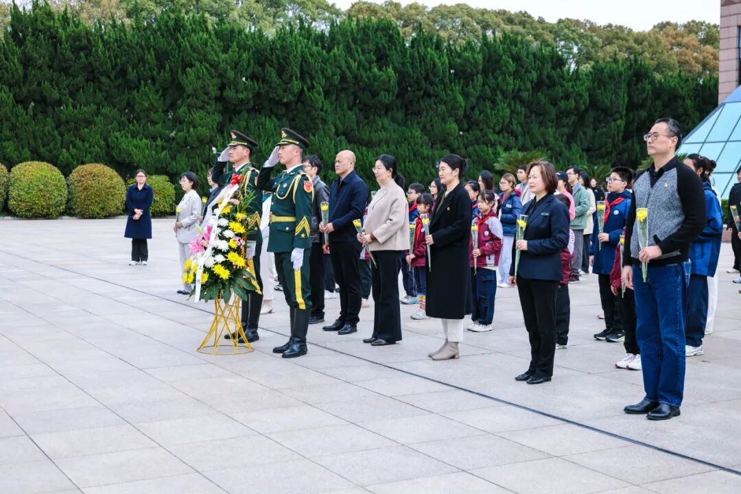 课前,师生们首先来到龙华烈士陵园无名烈士墓前举行庄严的祭奠仪式。雄壮的《义勇军进行曲》响彻陵园,百余位师生代表肃立致敬,高唱国歌。全体师生向无名烈士敬献花篮、鞠躬,随后依次上前,将手中菊花轻放在无名烈士墓前,向革命先烈深情致敬。