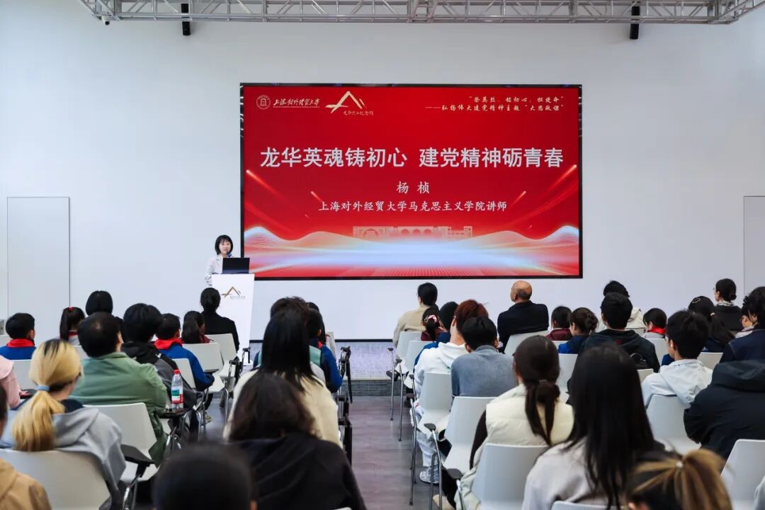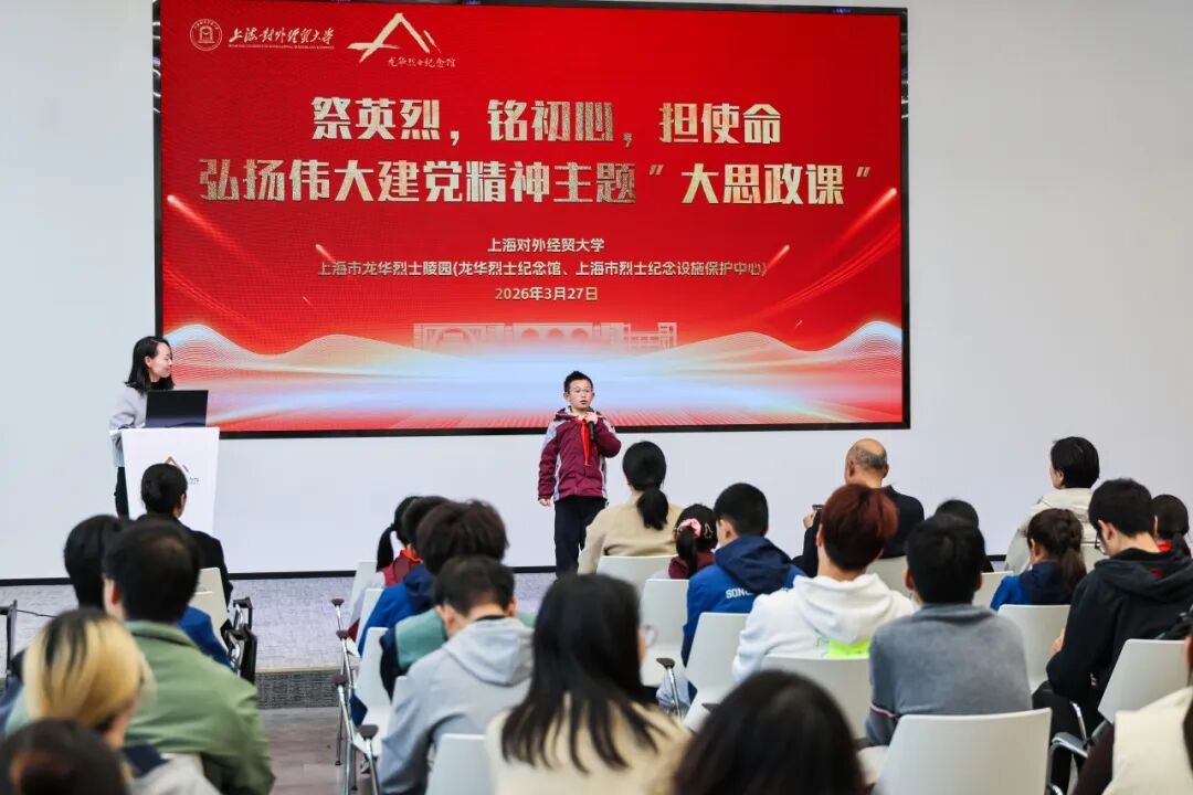 上海对外经贸大学马克思主义学院中国近现代史纲要教研室杨桢老师,以“龙华英魂铸初心・建党精神砺青春”为主题,结合龙华作为“上海雨花台”的厚重历史,从坚持真理、坚守理想,践行初心、担当使命,不怕牺牲、英勇斗争,对党忠诚、不负人民四个维度,深情讲述欧阳立安、彭湃、赵世炎、陈延年等龙华英烈的感人事迹,生动阐释英烈精神与伟大建党精神的内在逻辑与血脉联系,引导同学们感悟精神力量。杨桢老师勉励在场学子,将历史感悟转化为奋进动力,接过精神火炬,主动投身强国建设与民族复兴伟业,在即将开启的“十五五”中国式现代化征程中勇担时代使命,书写无愧于先辈、无愧于时代的青春答卷。