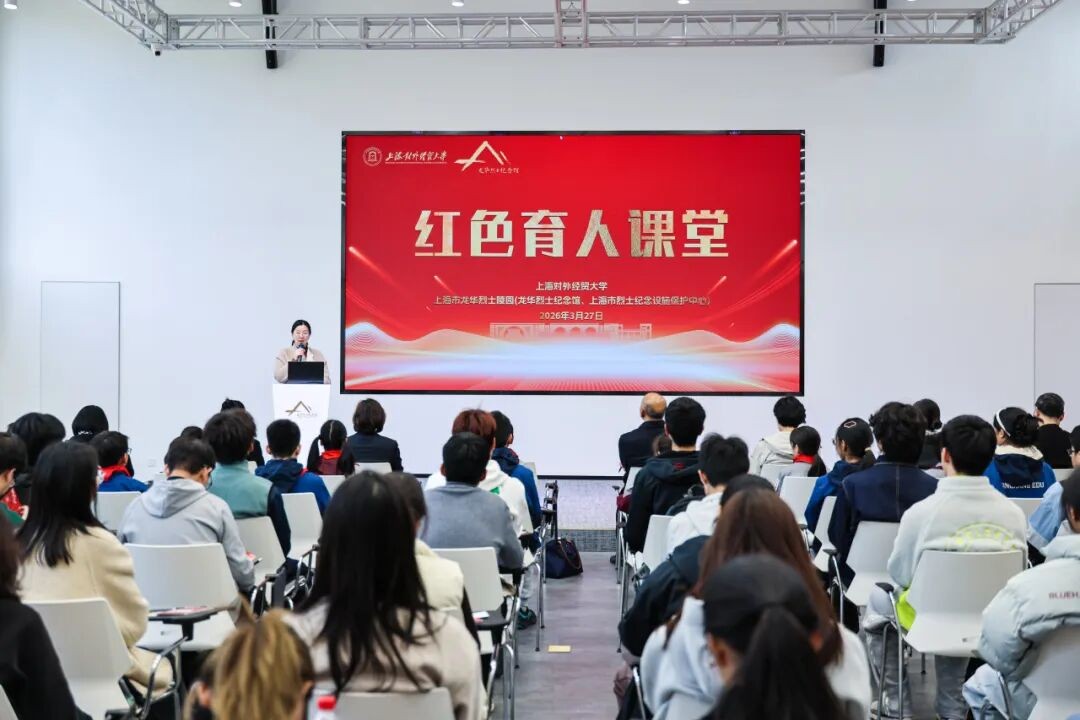 在多媒体教室,上海对外经贸大学党委副书记、副校长沈艺以课程导学人身份,为“红色育人课堂”拉开序幕。她表示,学校与龙华烈士陵园共建“红色育人课堂”的八年来,双方深度整合高校学科师资与纪念馆文物场景资源,推动“思政小课堂”与“社会大课堂”有效融合,让思政教育从传统讲授转向沉浸式体验。今年恰逢中国共产党成立105周年与“十五五”开局之年,她寄语在场大中小学生,通过这堂思政课实现三个目标:让历史活起来、让理论实起来、让信仰立起来。希望同学们在英烈精神浸润中汲取奋进力量,赓续红色血脉,将个人理想融入民族复兴伟业,以青春担当走好新时代长征路。
