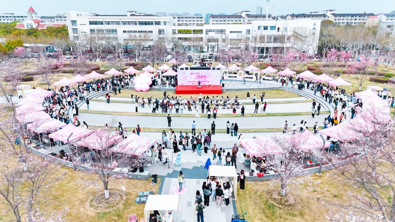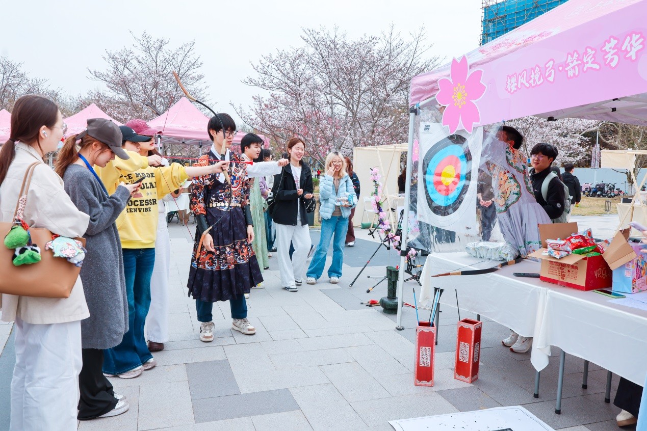樱花树下,弦音婉转,春风拂过,舞姿蹁跹。“现场氛围特别好,有很多有意思的活动,樱花美食和周边好看又实用!”来自金融学(数字金融实验班)专业的李衍彬感叹道。