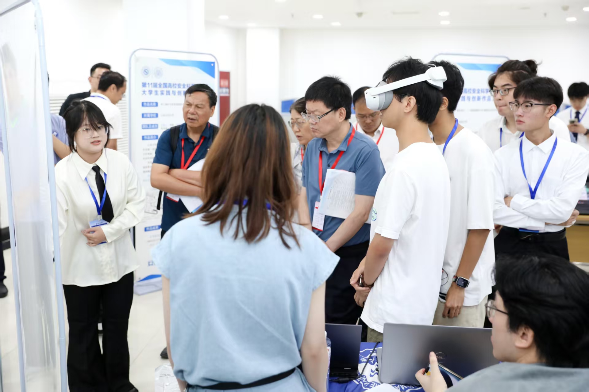 团队成员向专家演练、介绍项目阶段性成果,该成果荣获第11届全国安全科学与工程大学生实践与创新作品大赛二等奖。