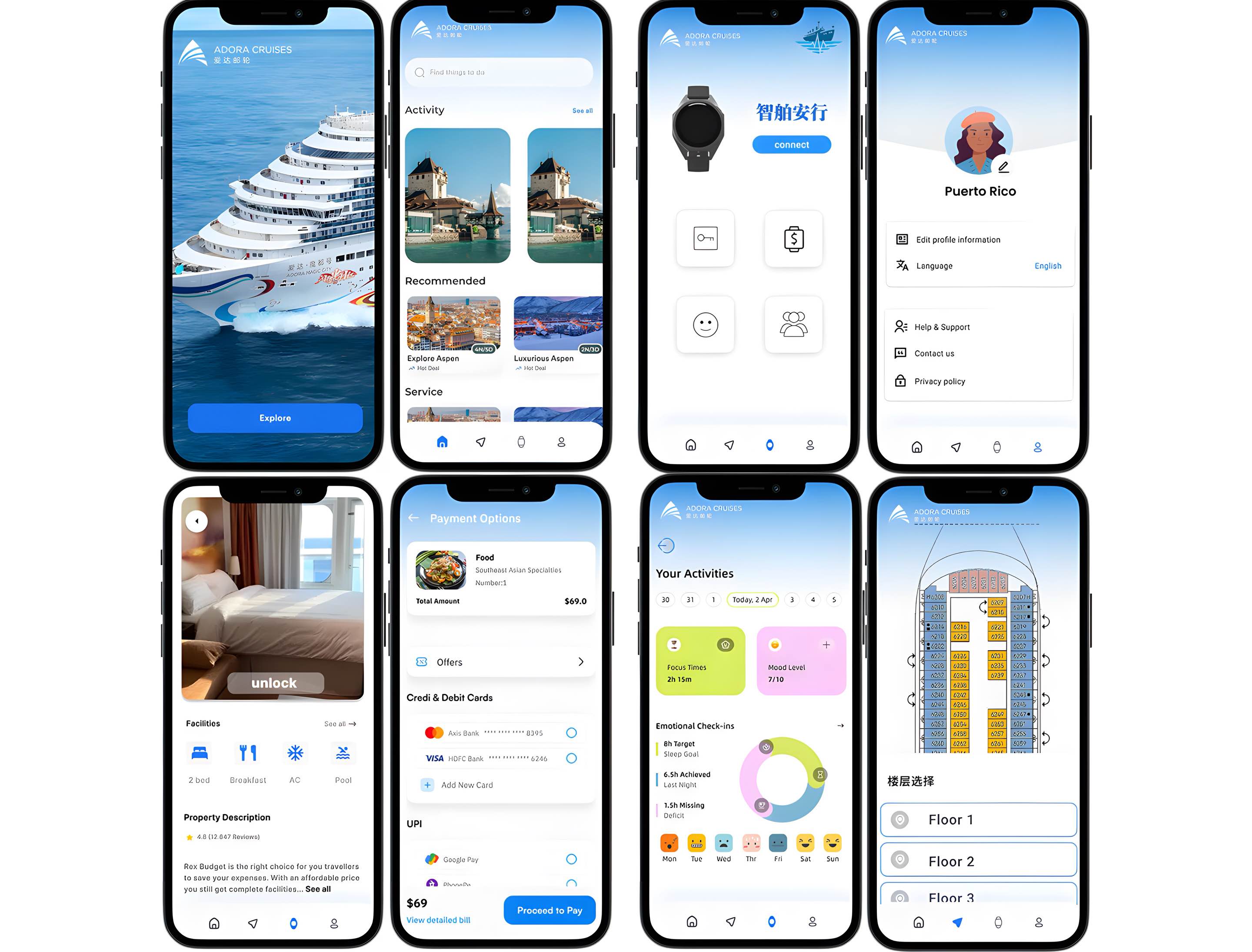 彼时,国产邮轮产业正迎来规模化发展新阶段,旅客对邮轮出行的个性化、便捷化需求持续提升,而邮轮运营方却面临服务模式单一、增值营收渠道有限的发展瓶颈 。同时,邮轮出行中旅客需携带多卡多物、船内寻路不便、个性化服务供给不足等痛点突出,运营方因各系统数据孤岛,难以打造精细化增值服务体系,国际现有方案也多聚焦基础功能,缺乏系统化增值服务设计。