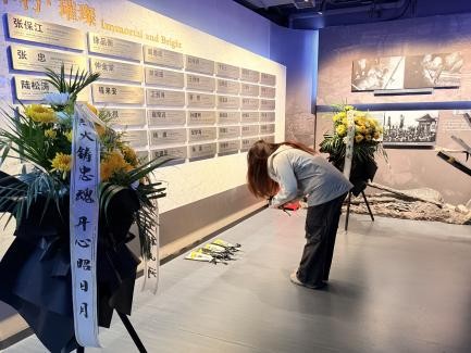 “大家正前方所看到的这幅宽8米,高3米的巨型雕塑墙名为‘百年守沪’。”志愿服务时长超过4000小时的上海首位五星级消防志愿者丁晨如是说道。声声叩响,久久回荡,他用饱含深情的讲解诠释着场馆育人的功能,引领学生与历史对话、与英雄共鸣。