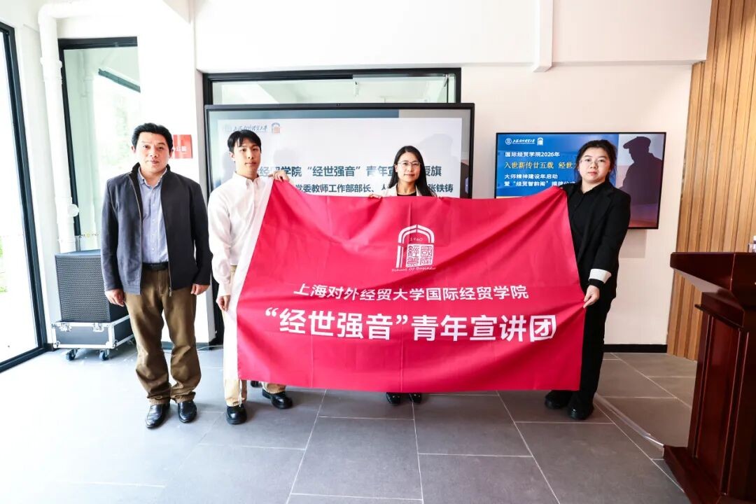 这是上海对外经贸大学国际经贸学院2026年“入世薪传廿五载,经世力行育新人”大师精神建设年启动暨“经贸智韵阁”揭牌仪式上,“经世强音”青年宣讲团师生共同发出的时代之音,充分体现了在数字浪潮重塑贸易形态、全球经贸治理走向纵深之际,上经贸大师生对老一辈学人“经世致用、赤子报国”学术风骨的传承。