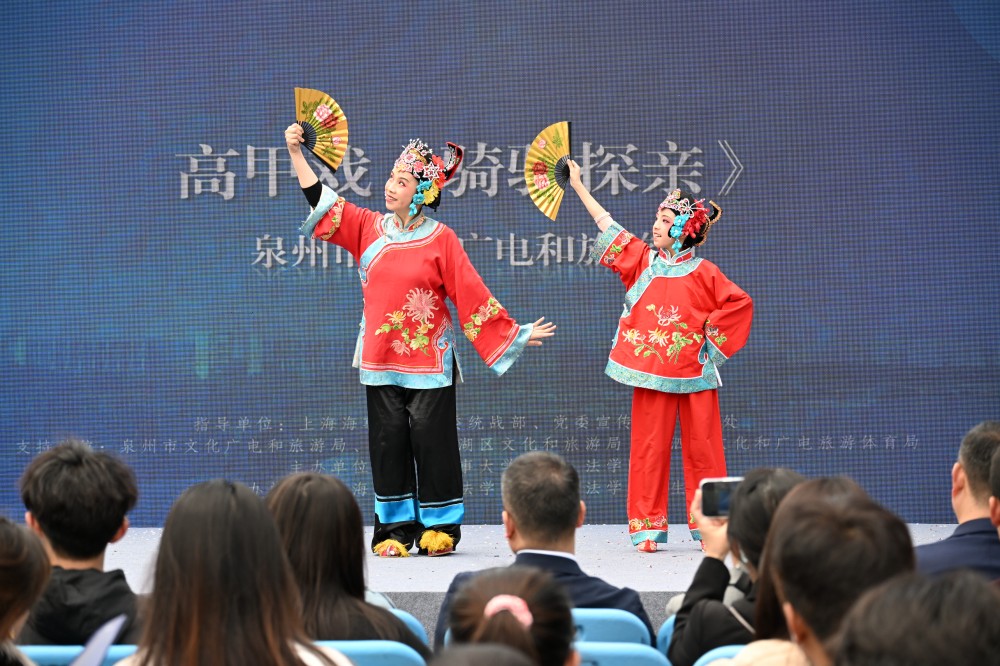 启动仪式在“家乡美”活动宣传视频的暖场中拉开帷幕。泉州市文旅局带来的高甲戏《骑驴探亲》率先登场,演员以诙谐生动的表演赢得阵阵笑声。随后,嘉兴市南湖区文旅局代表献上独唱《南湖美》,歌声悠扬,将南湖的红色记忆娓娓道来。泉州提线木偶《钟馗醉酒》更是技艺精湛,木偶在演员指尖灵动起舞,令现场师生叹为观止。