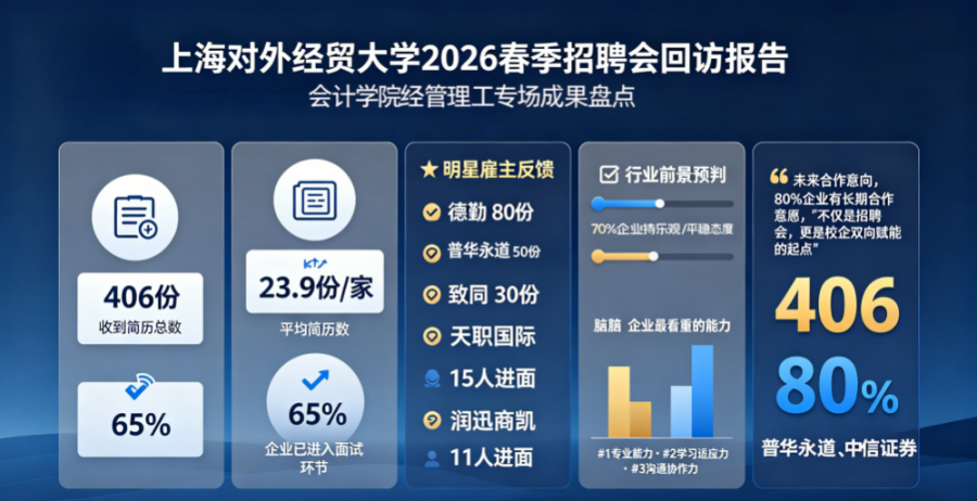 一场招聘会的结束,恰恰是深度育人的开始。在刚刚落幕的2026年春季“经管理工”专场招聘会后,会计学院并未止步于单一的成效统计,而是组织了一支由48名学生志愿者组成的回访团队,对22家参会企业进行了一对一深度回访,并形成了一份翔实的《企业回访分析报告》。这并非一次常规就业工作收尾,而是一场沉浸式的行业调研与学生自我教育。