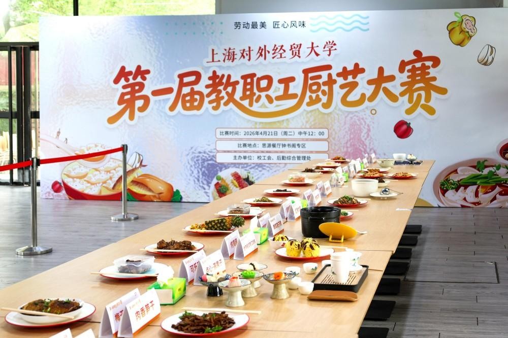 为庆祝第137个国际劳动节,弘扬劳动精神,展现教职工积极向上、热爱生活的精神风貌,增强校园凝聚力与归属感,4月21日中午,由上海对外经贸大学校工会(妇工委)、后勤综合管理处联合主办的首届教职工厨艺大赛在松江校区思源餐厅圆满举办。本次大赛以“劳动最美,匠心风味”为主题,共吸引来自全校各单位的41名教职工报名参赛,他们各显神通,为现场师生带来了一场兼具美味与创意的饮食文化盛宴。