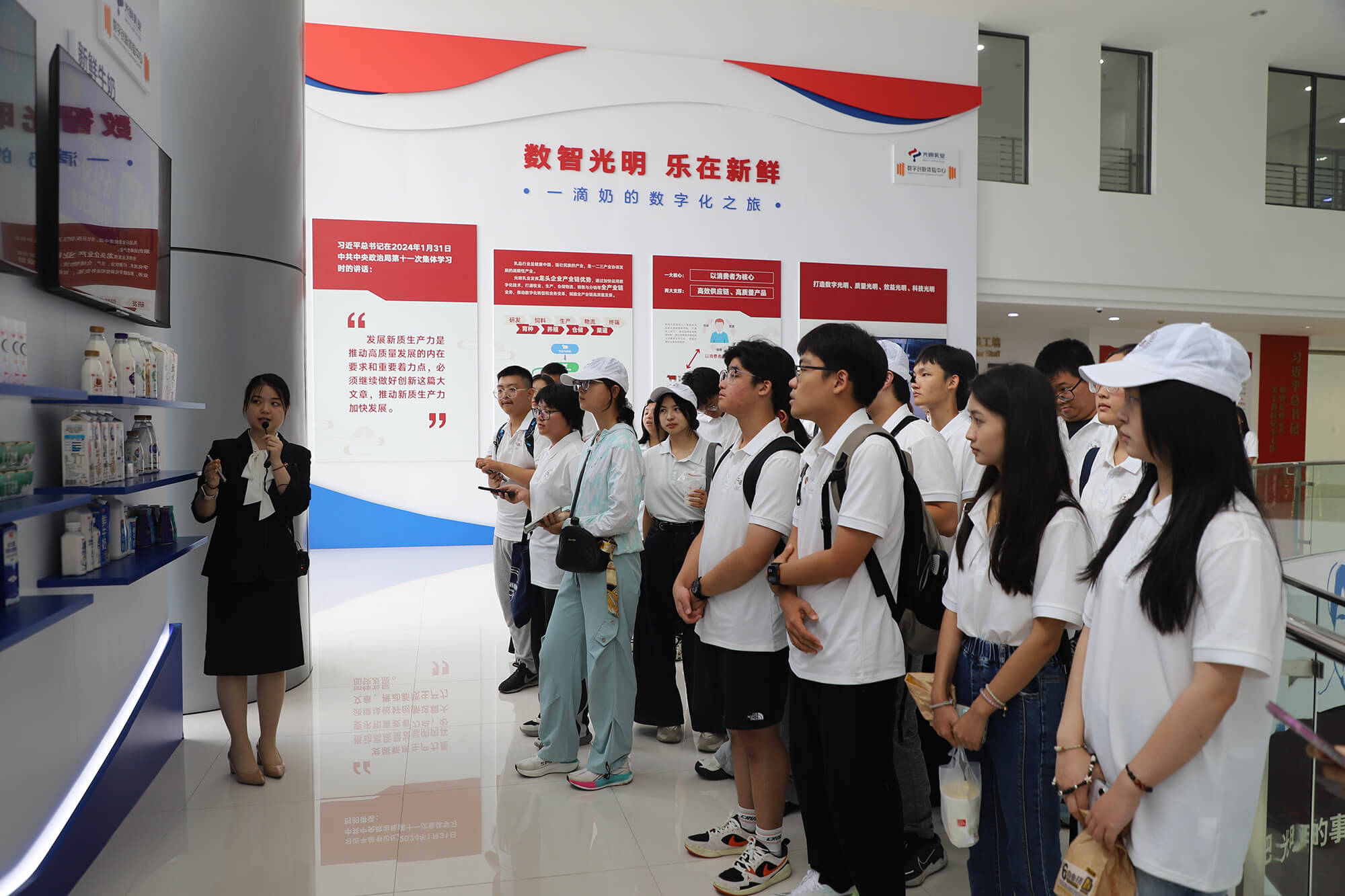 在参观过程中,同学们不仅深入了解了光明乳业的发展历程、路径及产品类型,更实地探访了现代化生产车间。工厂通过中央自动化控制技术与国际顶尖设备,对生产全程实时记录监测,构建起高效优化的乳品生产链条,让大家对生产流程有了直观认知。