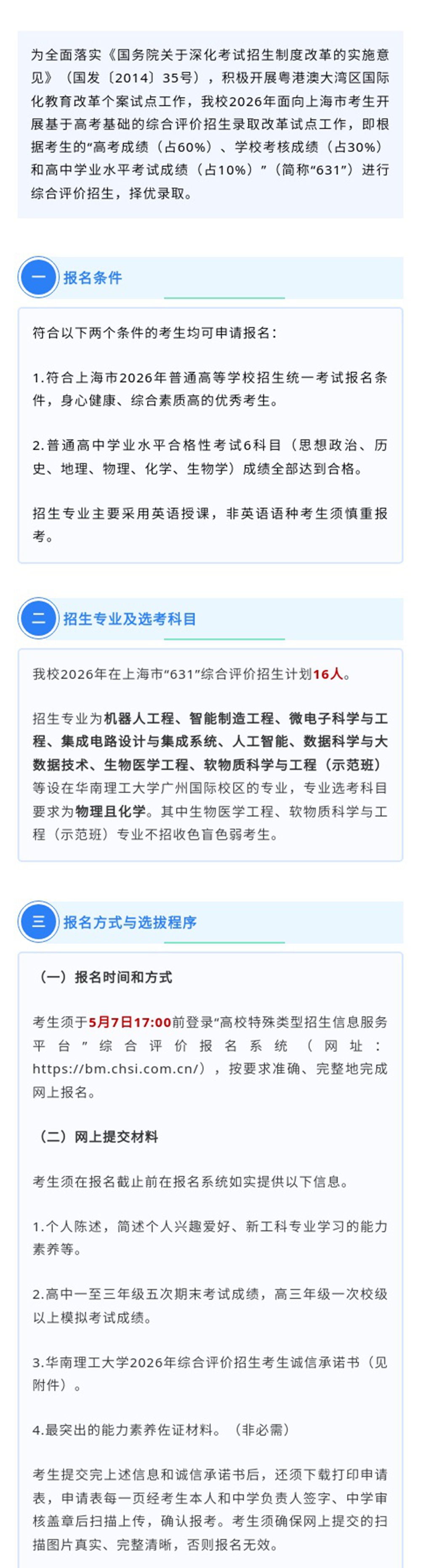华南理工大学2026年上海市综合评价招生简章