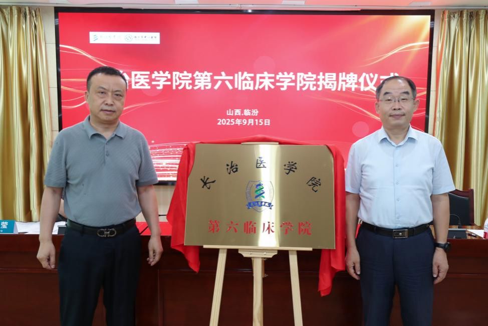 王旭与乔飞鸿共同为“长治医学院第六临床学院”揭牌。