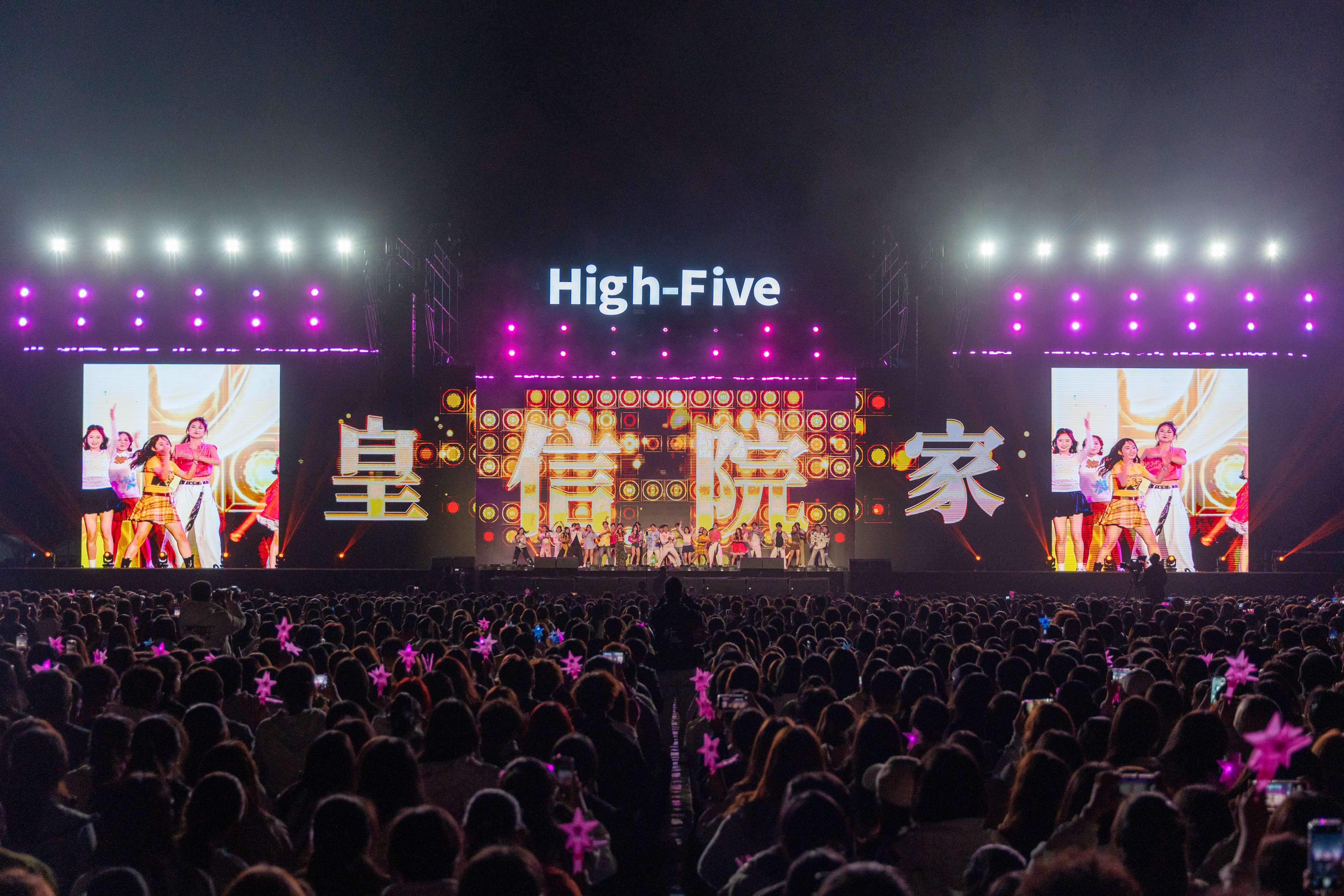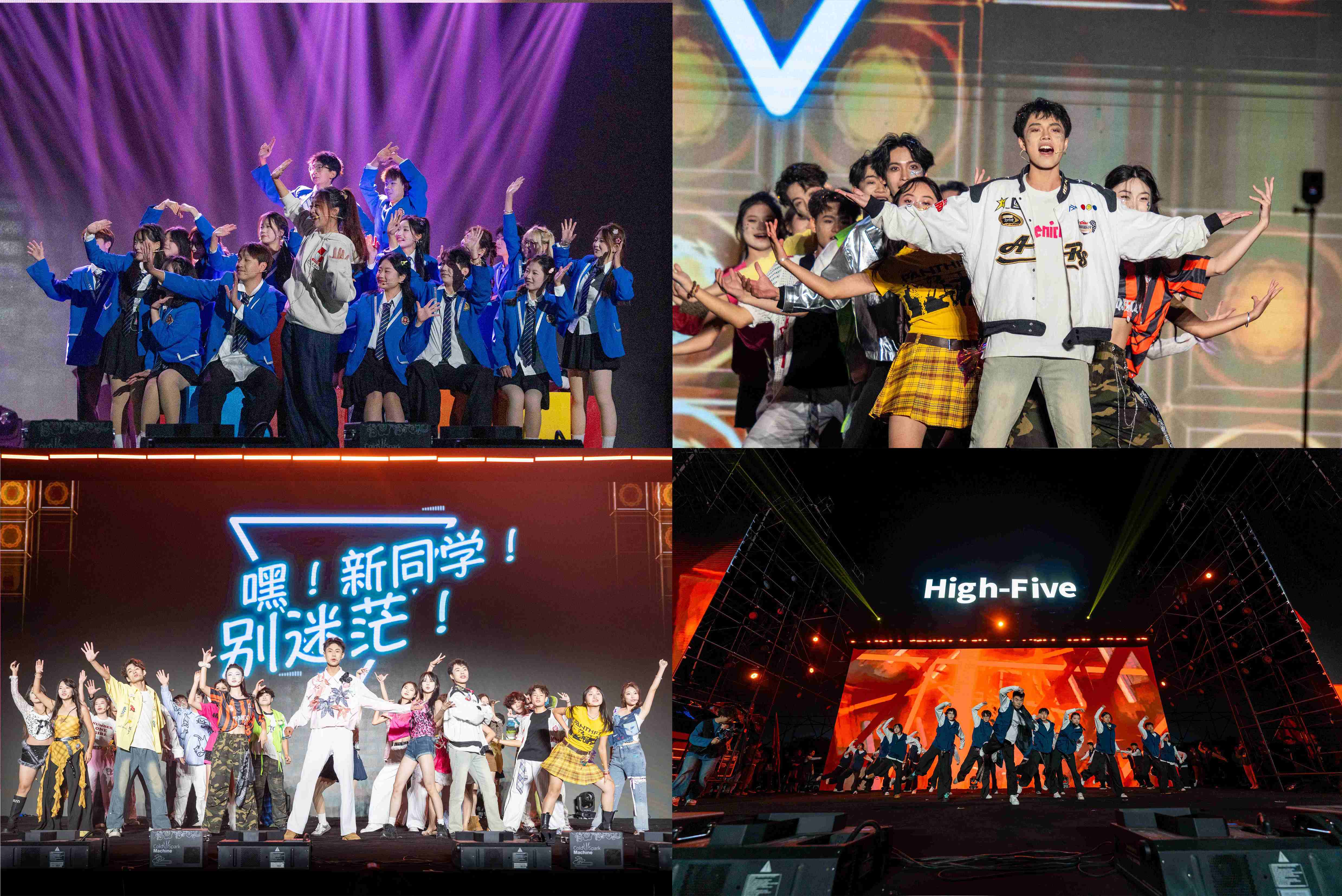 本届迎新晚会以“High-Five”为主题,以“击掌”为线索,串联起新生与校园之间的情感共鸣。整场晚会分为“Hey!新面孔!”“Wow!超有料!”“Up!青春力!”“Go!High-Five!”四个篇章,将节目创意、舞台效果与学校“四位一体双院制”育人理念巧妙融合,明快的色彩随击掌互动流转,绚丽的灯光与旋律交织跃动,为现场观众带来了一场沉浸式的艺术盛宴。