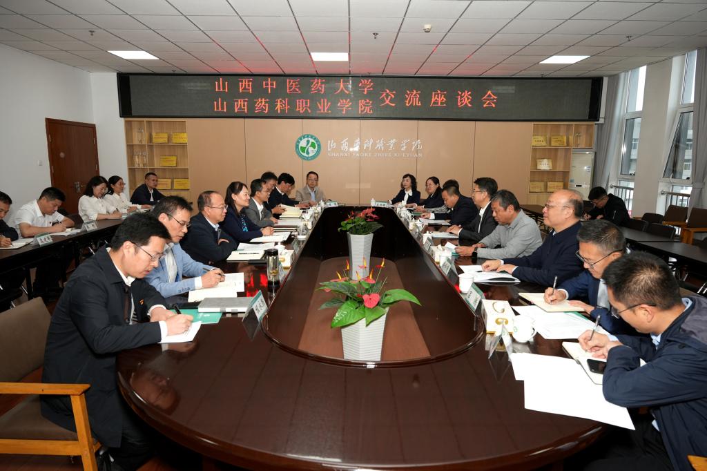 山西药科职业学院领导班子成员及部分职能部门、教学系负责人,山西中医药大学相关职能部门及学院负责人参加座谈。