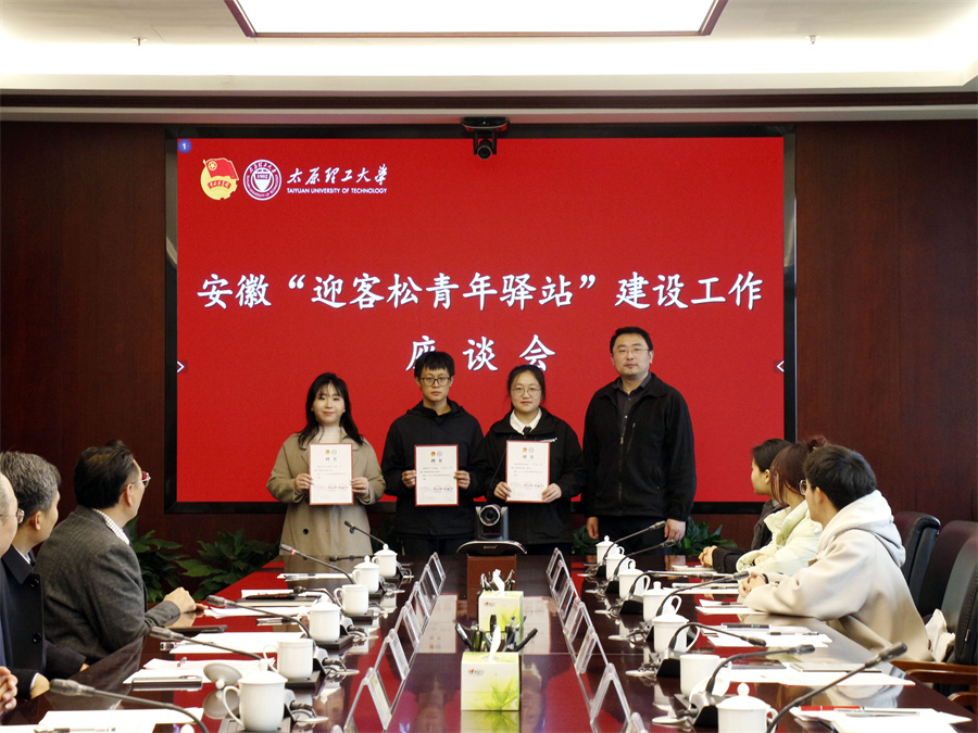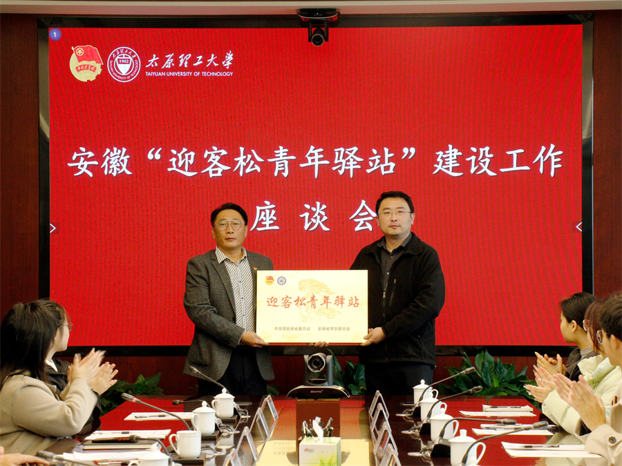 会议期间,共青团安徽省委为太原理工大学“迎客松青年驿站”授牌,为驿站站长、副站长颁发聘书。