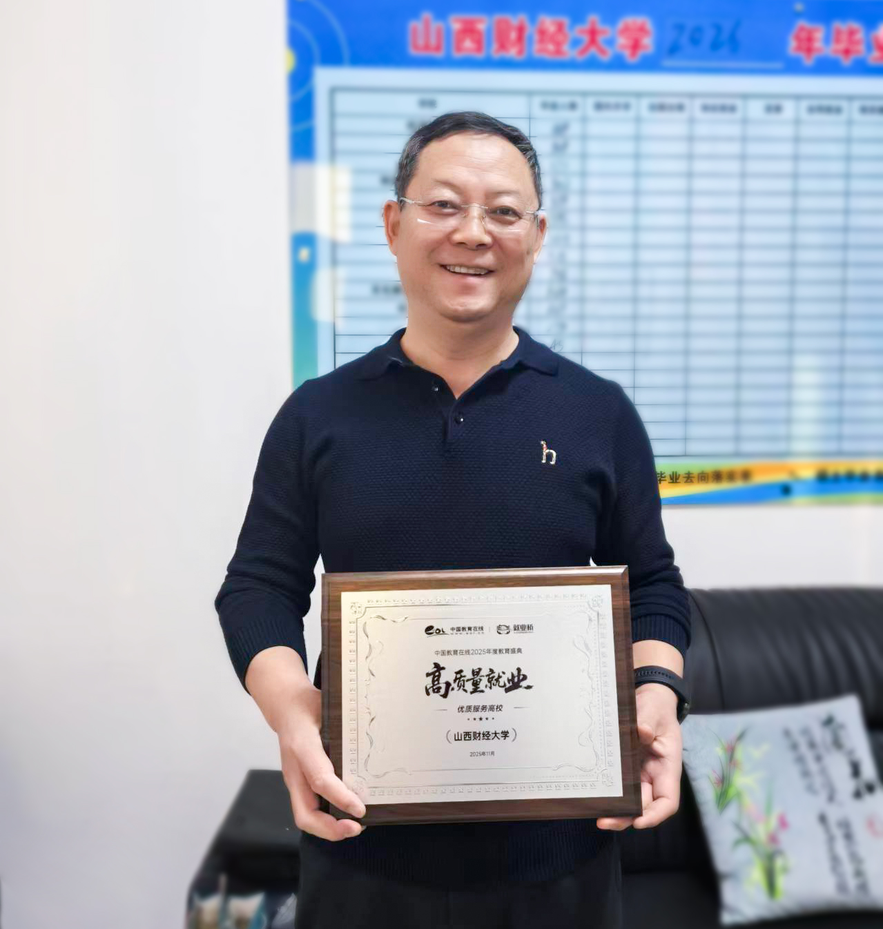 为深入贯彻党中央、国务院关于促进高校毕业生等青年就业创业的决策部署,落实《人力资源社会保障部 教育部 财政部关于做好2025年高校毕业生等青年就业工作的通知》等最新政策精神,挖掘和推广就业工作典型。中国教育在线·就业桥举办了“高质量就业”2025年度教育盛典活动,表彰高校就业工作数智化转型,创新实践的优秀案例,对推动高校就业跨越式发展,汇聚创新动力的榜样单位进行推广。山西财经大学应邀参选并荣获“2025年度高质量就业·优质服务高校”荣誉称号。